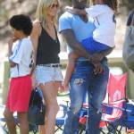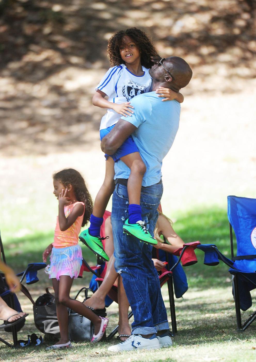 Heidi Klum kisses her ex-husband Seal while attending their children's soccer match in Brentwood, Calif. on Saturday. The family spent the whole day together having lunch at an Italian cafe and a trip to the mall. Mandatory Credit: Interstar/NPG.comjob:100414G1 October 4, 2014 Los Angeles, CANpg/LaPresseOnly Italy