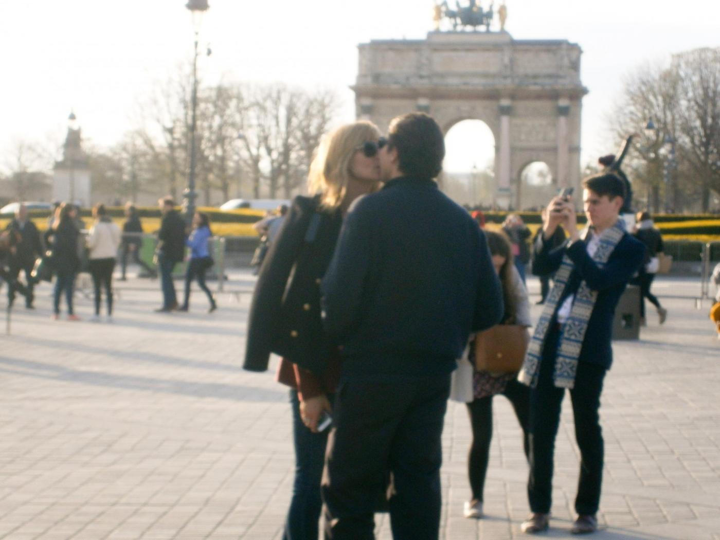 Heidi Klum kisses new boyfriend Vito Schnabel while he takes a cell phone pic as the couple strolls around Paris, France together. Pixon Press/INFphotoLaPresse -- Only Italy