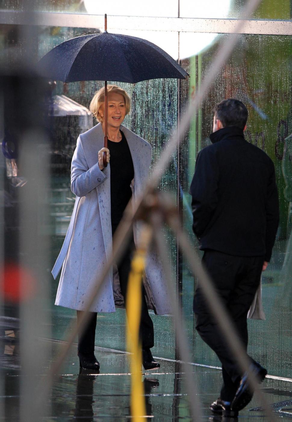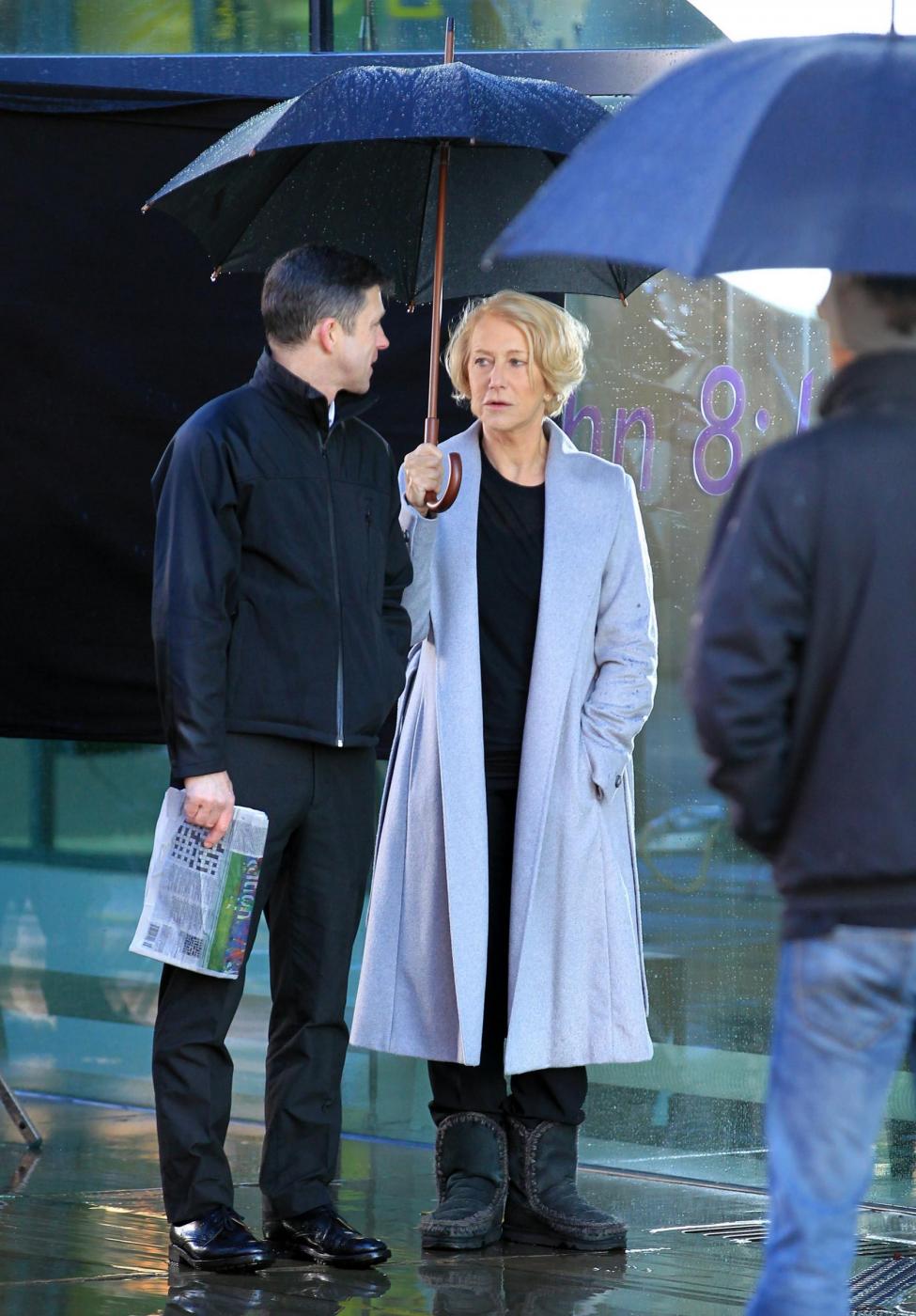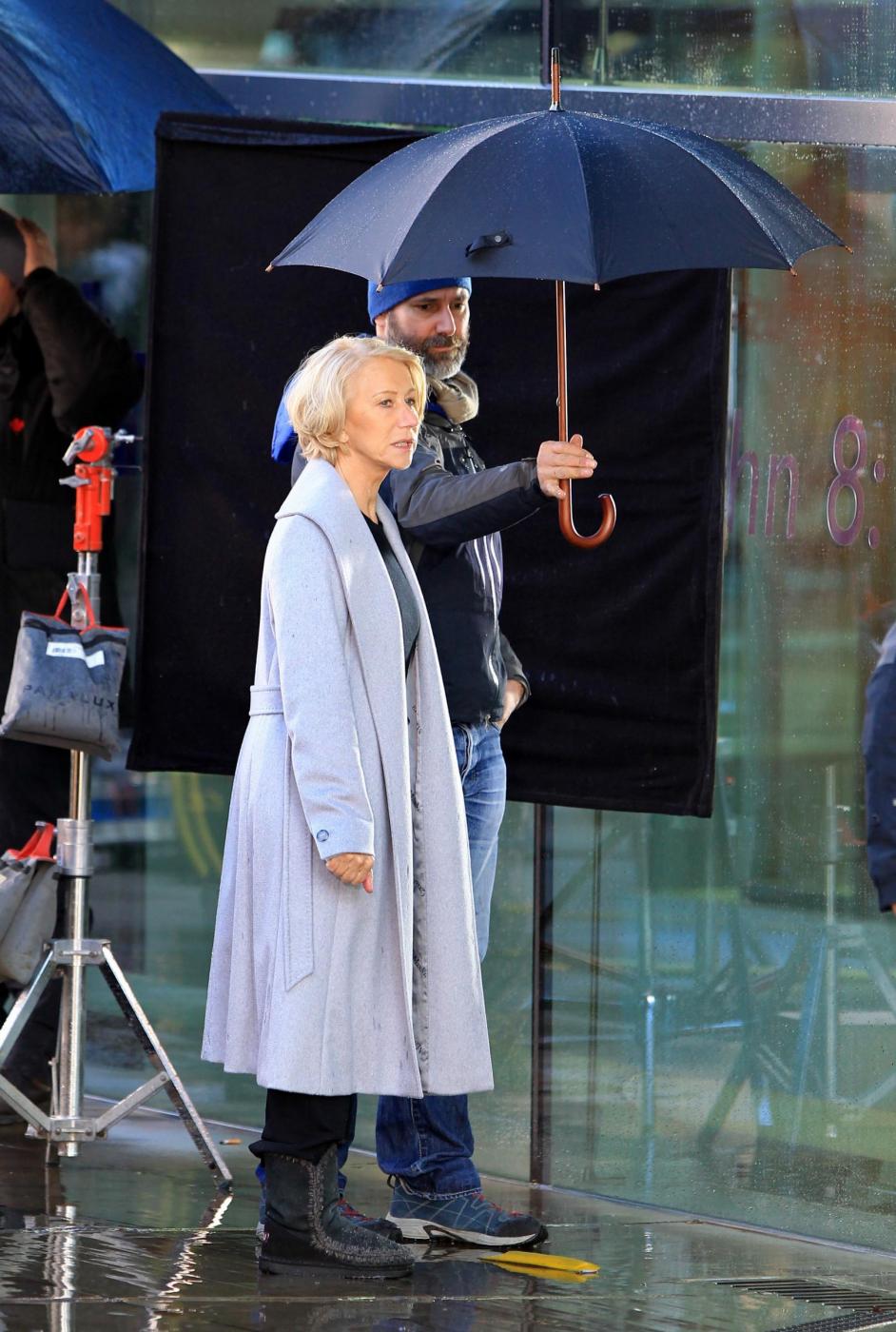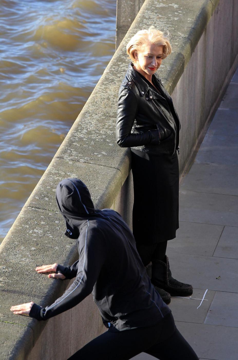 Picture Shows: Helen MirrenDecember 06, 2014Helen Mirren is seen filming a L'Oreal advert on the banks of London's River Thames in London, England.Looking sexy in a black dress and leather jacket; the sixty-nine year old British actress was seen stopping to admire a young male jogger.FameFlynet UK/LaPresseOnly Italy