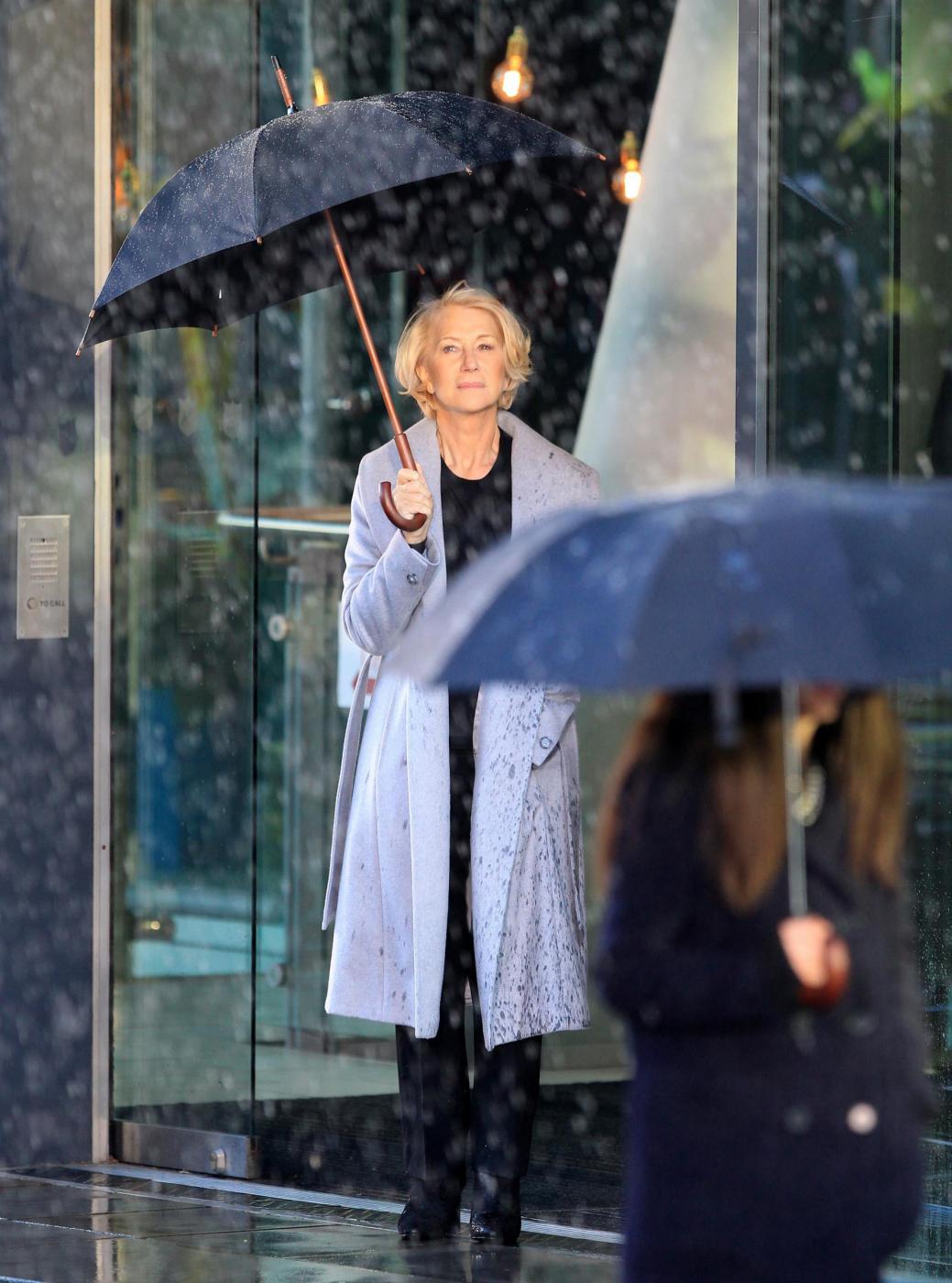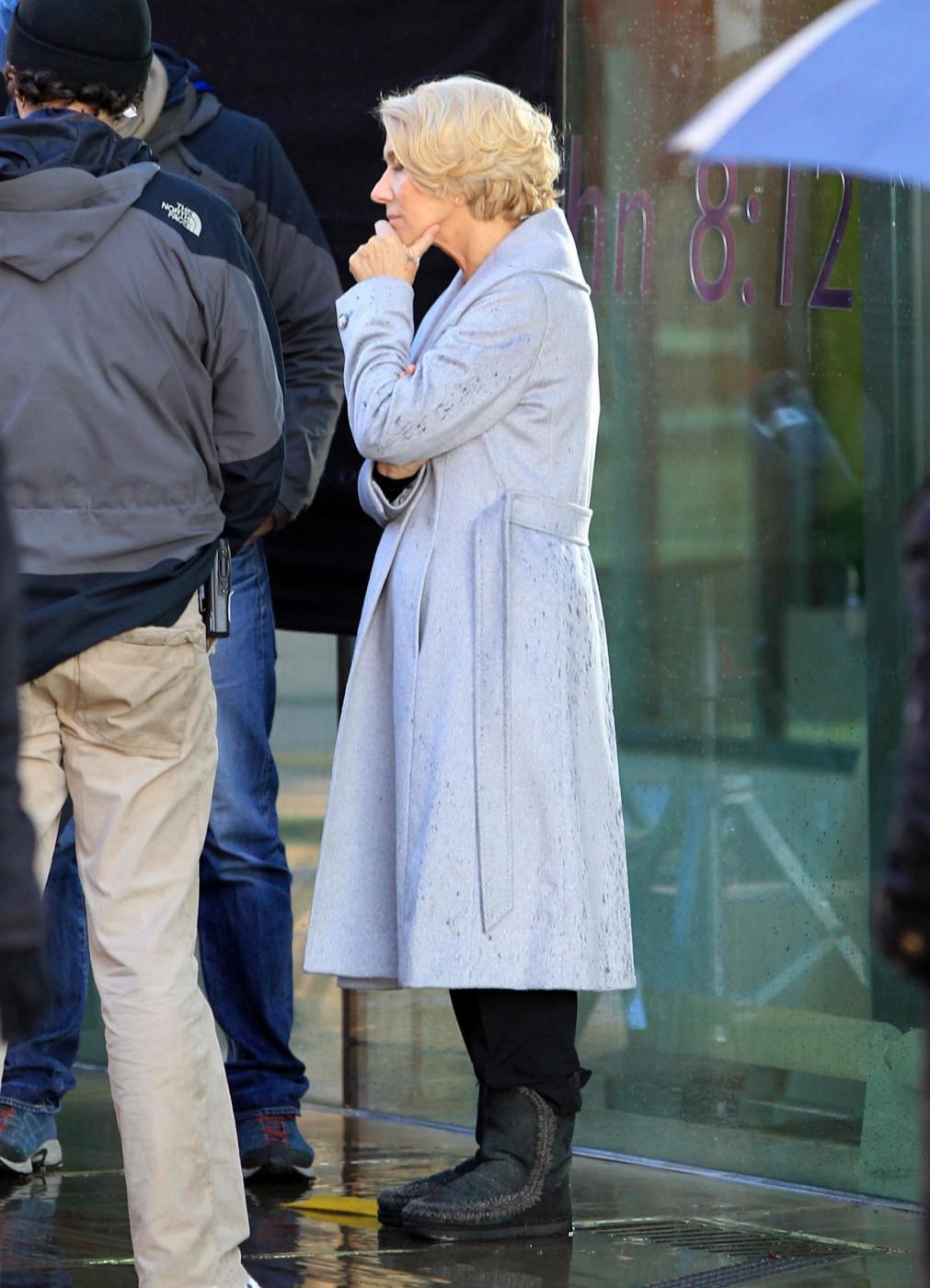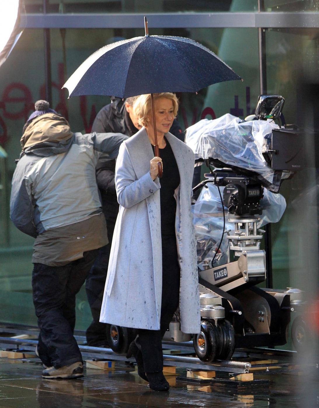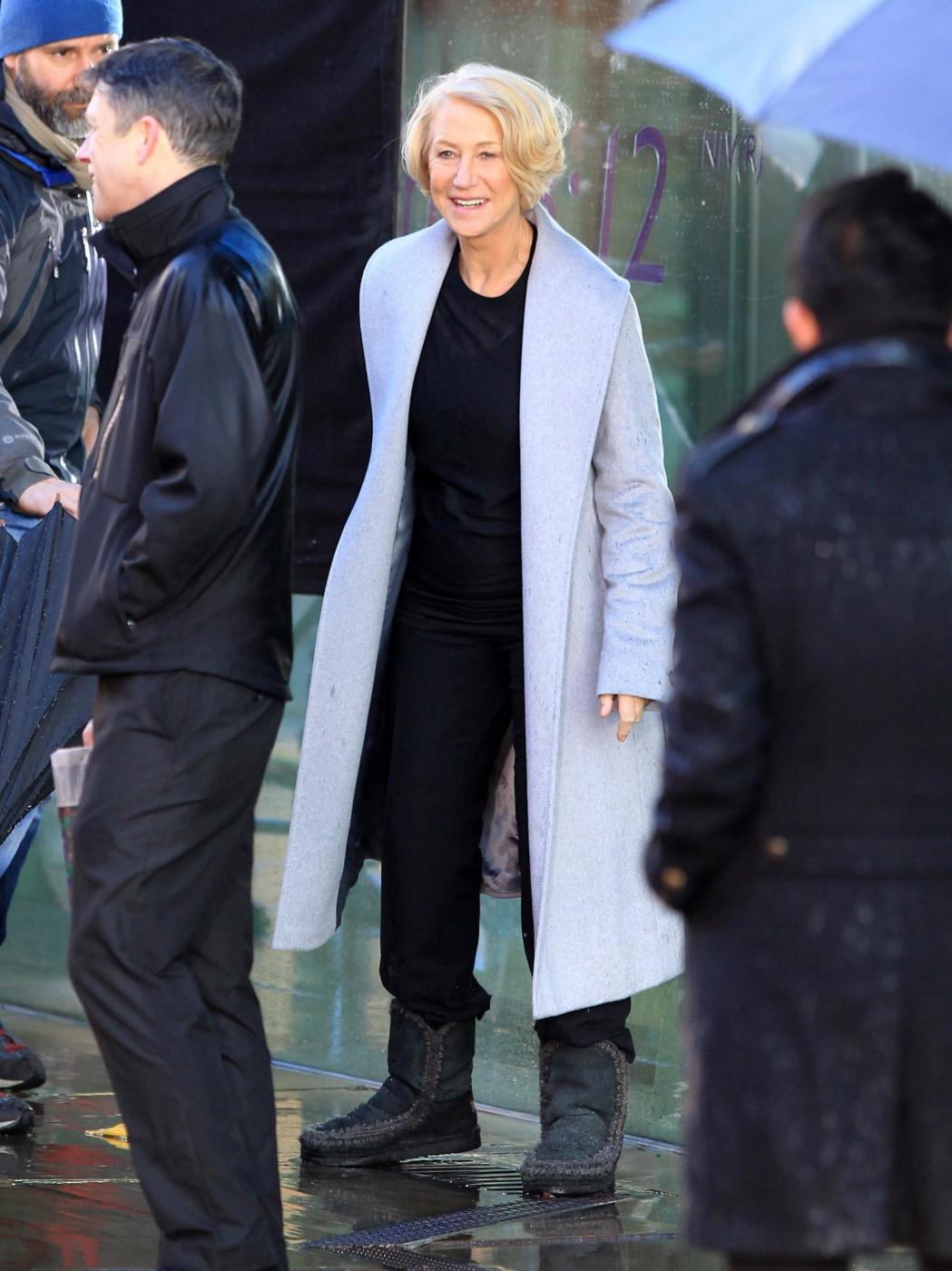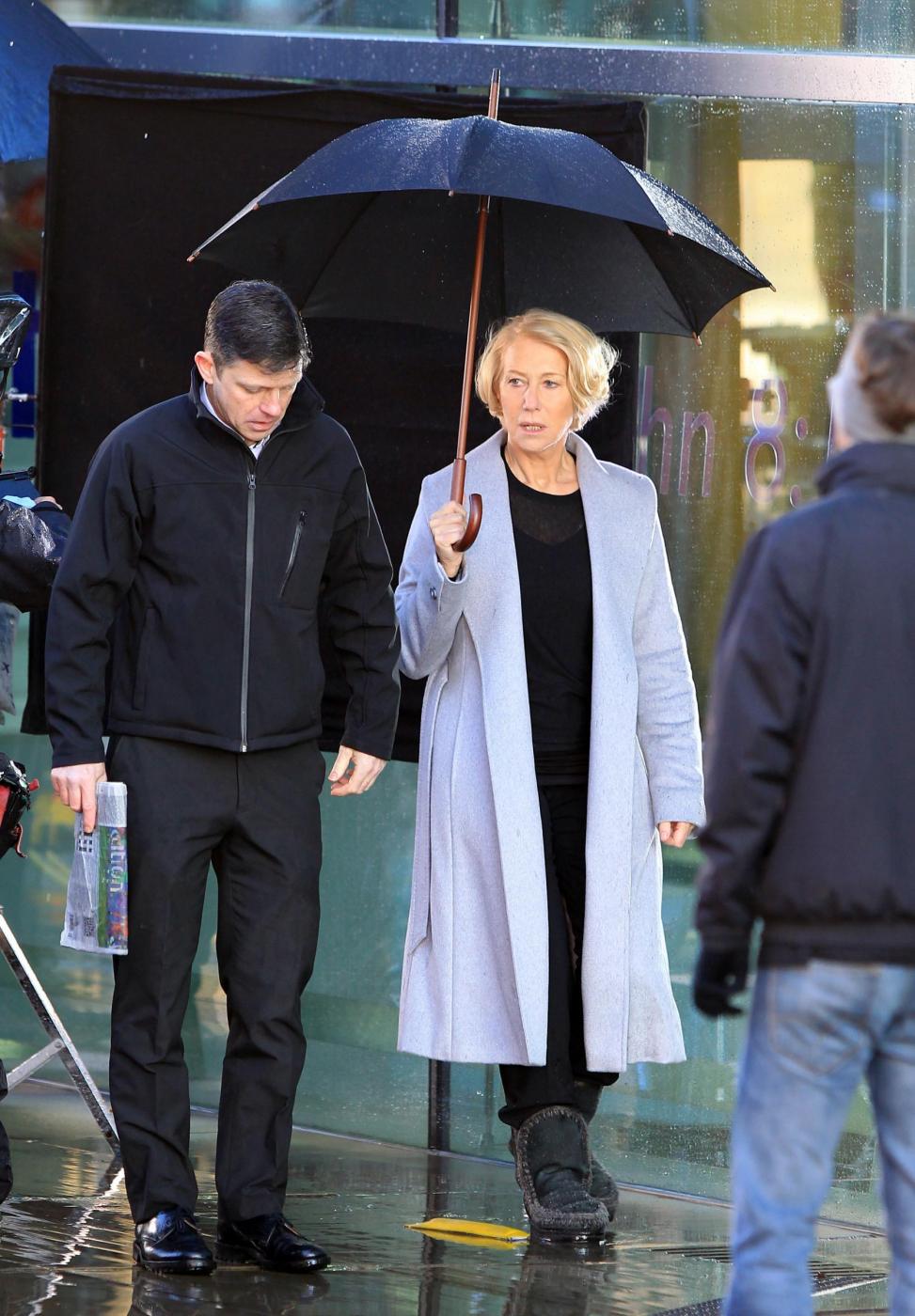 Picture Shows: Helen MirrenDecember 06, 2014Helen Mirren is seen filming a L'Oreal advert on the banks of London's River Thames in London, England.Looking sexy in a black dress and leather jacket; the sixty-nine year old British actress was seen stopping to admire a young male jogger.FameFlynet UK/LaPresseOnly Italy