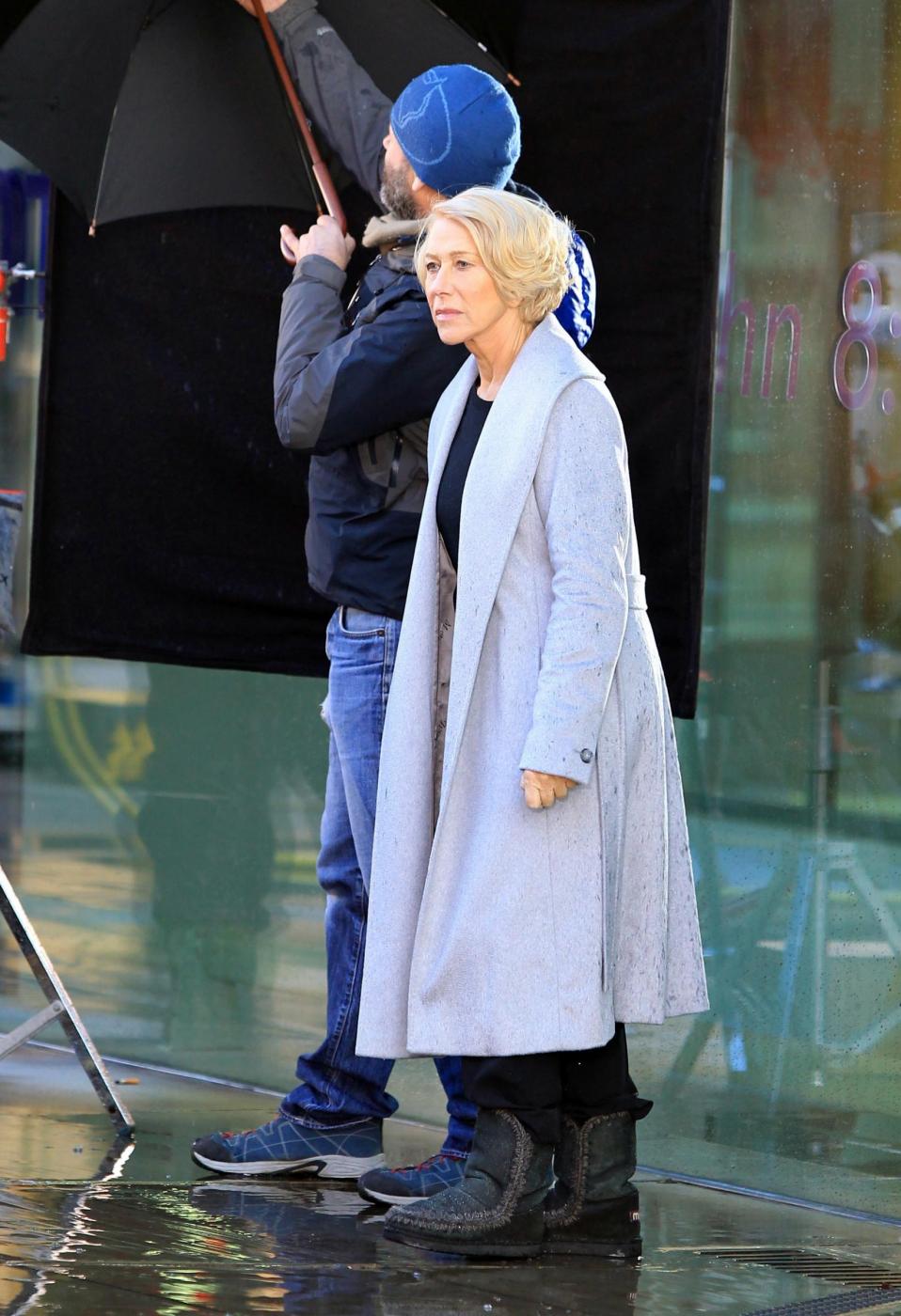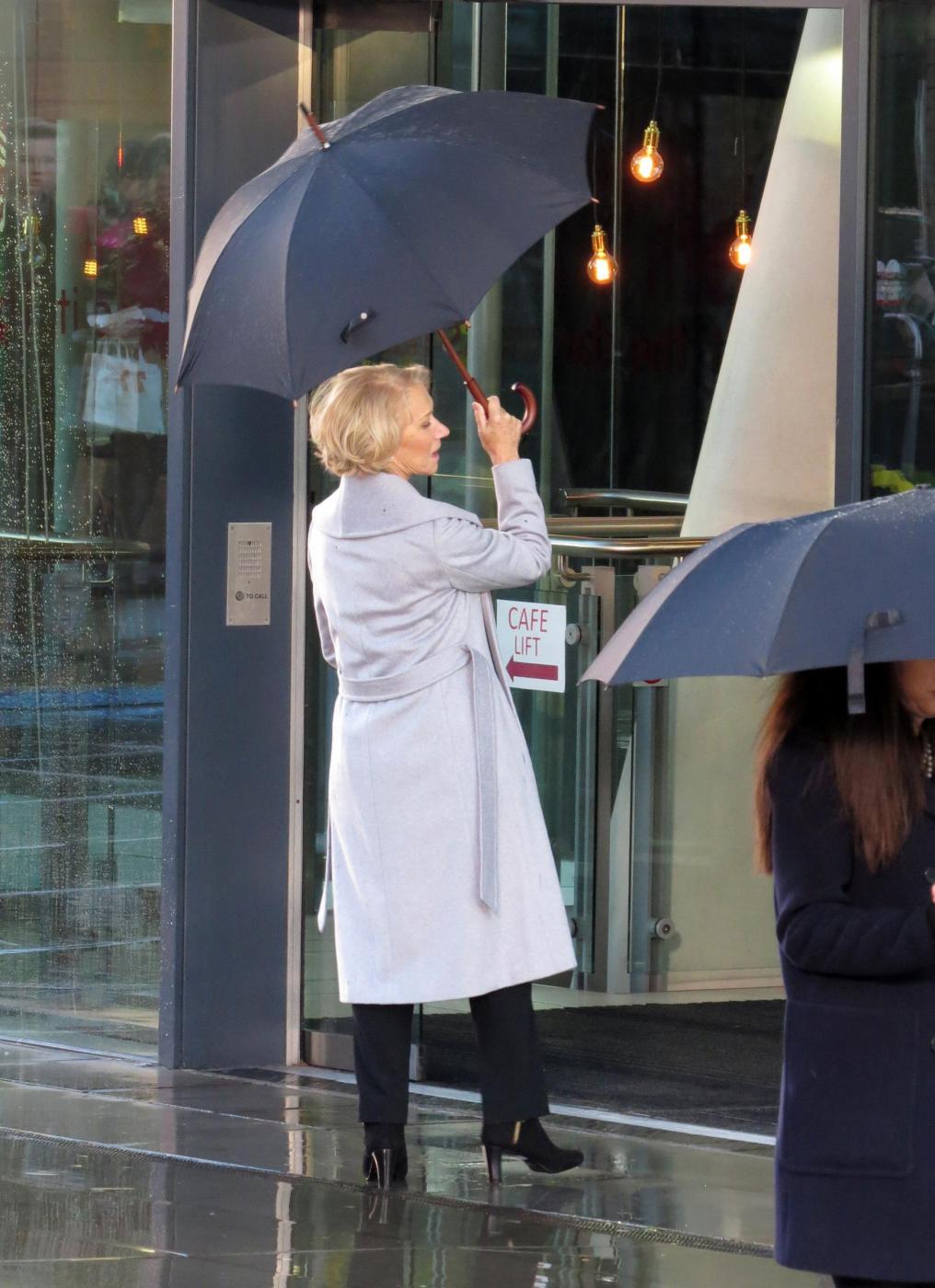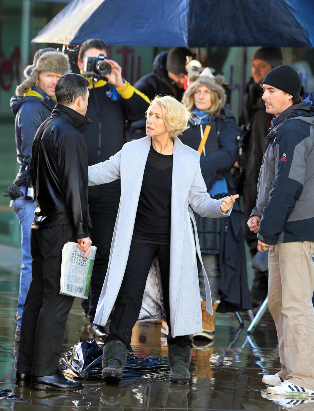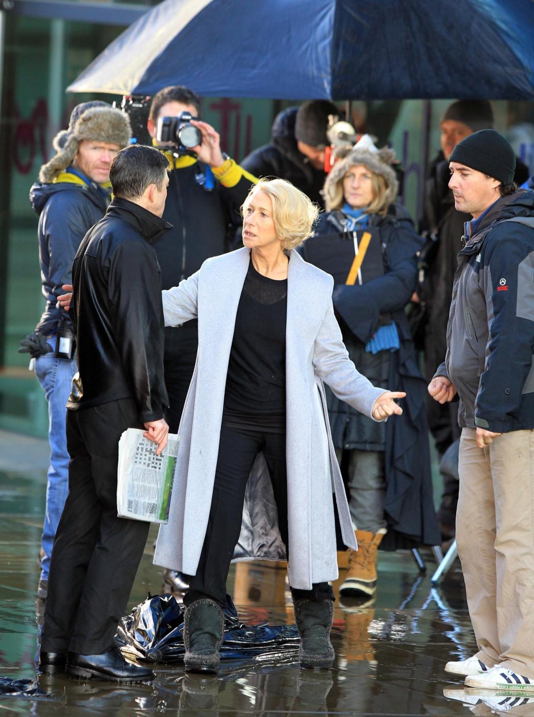 Picture Shows: Helen MirrenDecember 06, 2014Helen Mirren is seen filming a L'Oreal advert on the banks of London's River Thames in London, England.Looking sexy in a black dress and leather jacket; the sixty-nine year old British actress was seen stopping to admire a young male jogger.FameFlynet UK/LaPresseOnly Italy