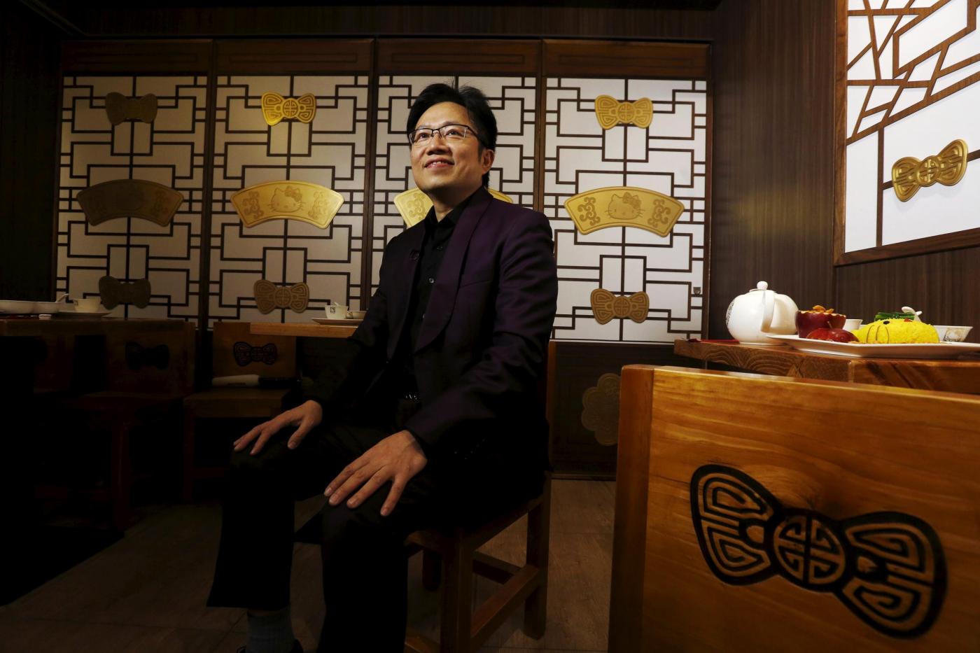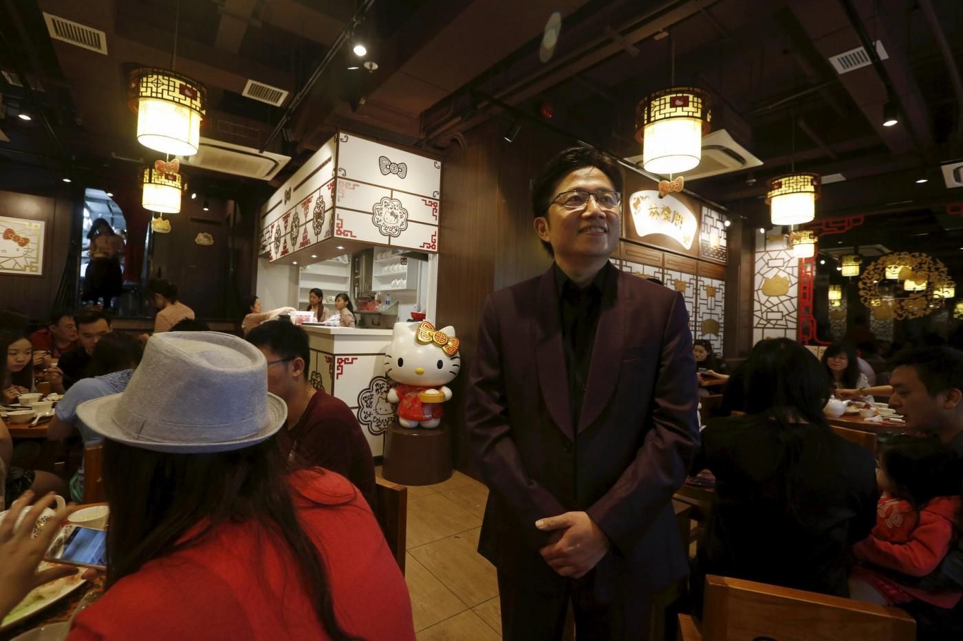 Owner Man Kwong poses in his Hello Kitty-themed Chinese restaurant in Hong Kong, China May 21, 2015. The world's first Chinese-style restaurant dedicated to the Japanese cartoon has been packed out daily despite not officially opening until June 1, 2015. The eatery features some 37 dishes such as dim sum and fried rice, often served in the shape of the girl-cat. Picture taken May 21, 2015. REUTERS/Bobby Yip