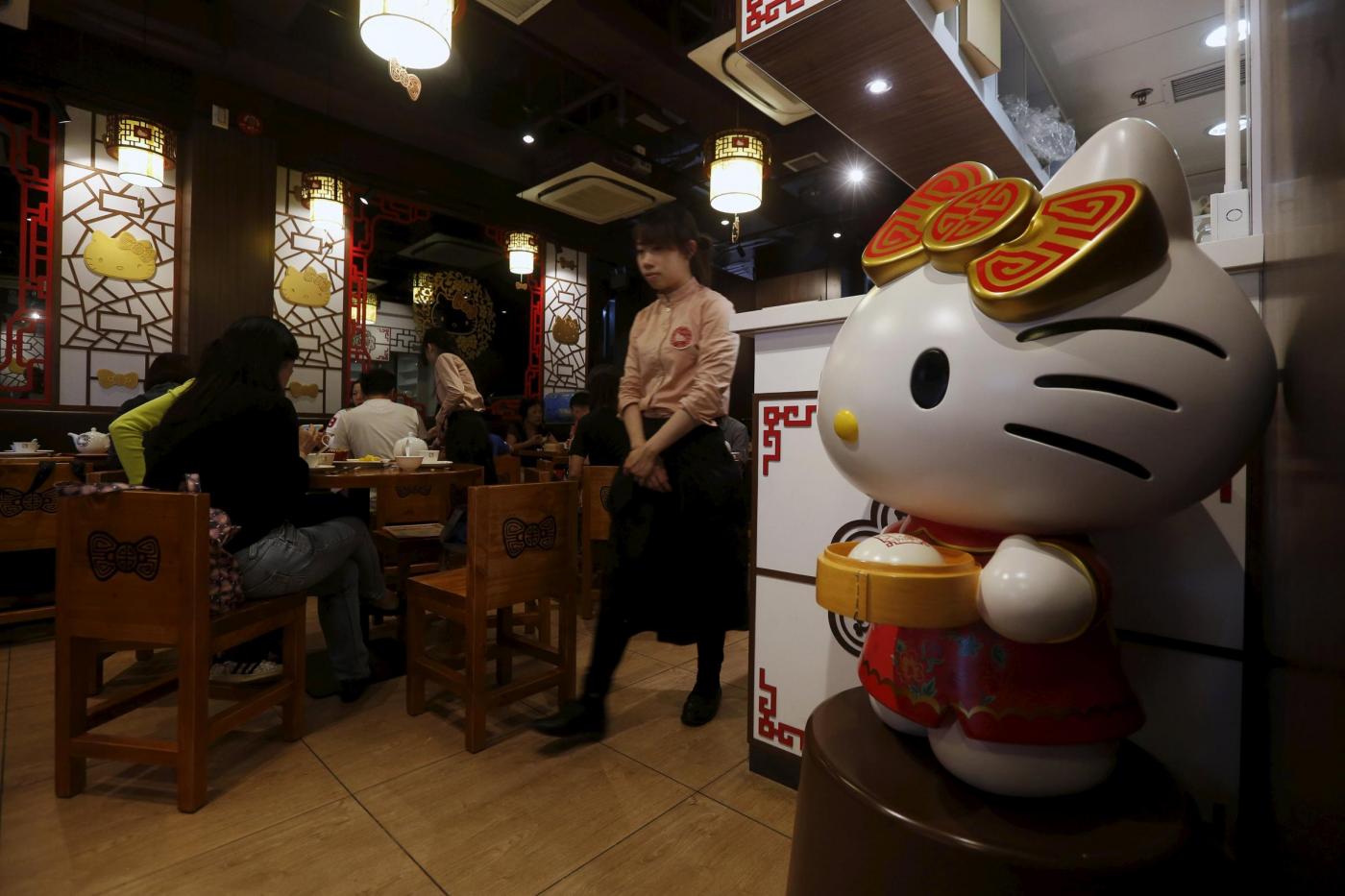 A Hello Kitty statue is displayed at a Hello Kitty-themed Chinese restaurant in Hong Kong, China May 21, 2015. The world's first Chinese-style restaurant dedicated to the Japanese cartoon has been packed out daily despite not officially opening until June 1, 2015. The eatery features some 37 dishes such as dim sum and fried rice, often served in the shape of the girl-cat. Picture taken May 21, 2015. REUTERS/Bobby Yip
