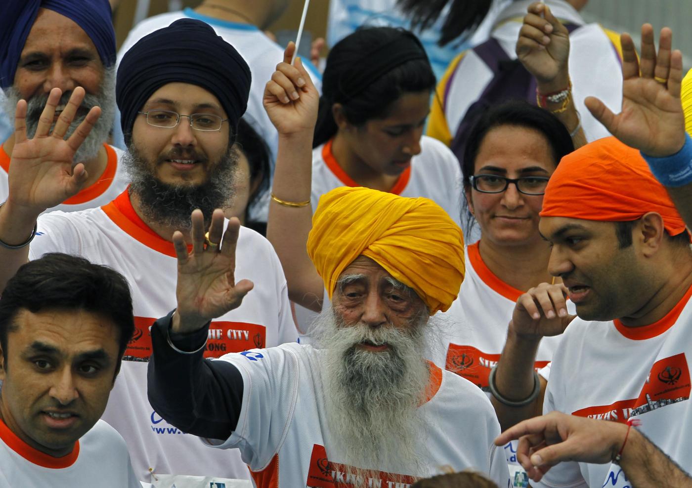 Centenarian marathon runner Fauja Singh, 101, left, originally from Beas Pind, in Jalandhar, India but who now lives in London, waves after finishing a 10-kilometer race, held as part of the annual Hong Kong Marathon, in Hong Kong Sunday, Feb. 24, 2013. Singh will retire from public racing after competing in the marathon. (AP Photo/Vincent Yu)(LaPresse/AP/Vincent Yu) Centenarian marathon runner Fauja Singh, 101, center, originally from Beas Pind, in Jalandhar, India but who now lives in London, runs in a 10-kilometer race, held as part of the annual Hong Kong Marathon, in Hong Kong Sunday, Feb. 24, 2013. Singh will retire from public racing after competing in the marathon. (AP Photo/Vincent Yu)(LaPresse/AP/Vincent Yu) Centenarian marathon runner Fauja Singh, 101, center, originally from Beas Pind, in Jalandhar, India but who now lives in London, runs in a 10-kilometer race, part of the annual Hong Kong Marathon, in Hong Kong Sunday, Feb. 24, 2013. Singh will retire from public racing after competing in the marathon. (AP Photo/Kin Cheung) Centenarian marathon runner Fauja Singh, 101, center, originally from Beas Pind, in Jalandhar, India but who now lives in London, waves after finishing a 10-kilometer race, which was part of the annual Hong Kong Marathon, in Hong Kong Sunday, Feb. 24, 2013. Singh will retire from public racing after competing in the marathon. (AP Photo/Vincent Yu)(LaPresse/AP/Vincent Yu) Centenarian marathon runner Fauja Singh, 101, center, originally from Beas Pind, in Jalandhar, India but who now lives in London, runs in a 10-kilometer race, held as part of the annual Hong Kong Marathon, in Hong Kong Sunday, Feb. 24, 2013. Singh will retire from public racing after competing in the marathon. (AP Photo/Vincent Yu)(LaPresse/AP/Vincent Yu) Centenarian marathon runner Fauja Singh, 101, center, originally from Beas Pind, in Jalandhar, India but who now lives in London, smiles after finishing a 10-kilometer race, held as part of the annual Hong Kong Marathon, in Hong Kong Sunday, Feb. 24, 2013. Singh will retire from public racing after competing in the marathon. (AP Photo/Vincent Yu)(LaPresse/AP/Vincent Yu)