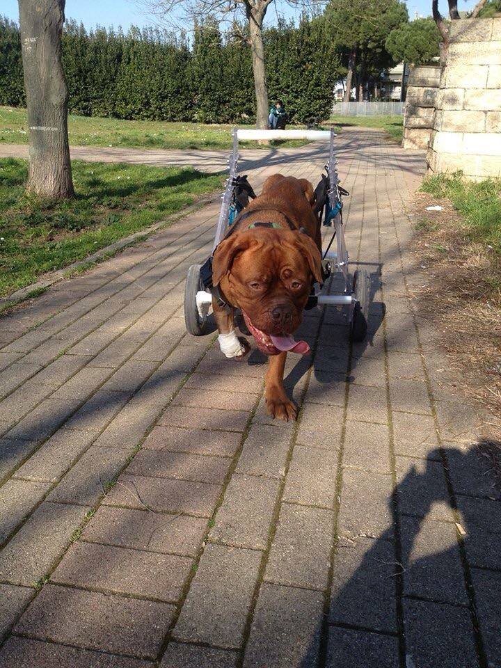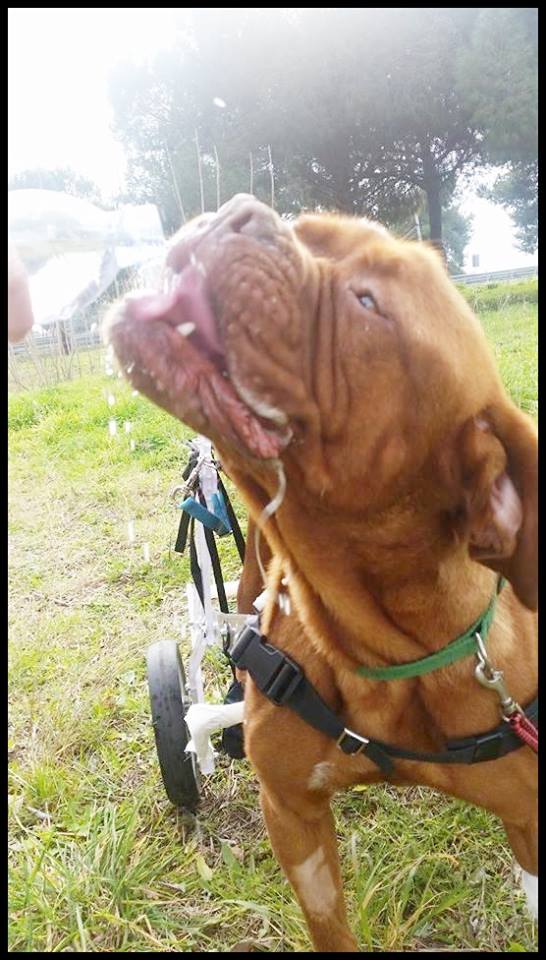 ROMA – Hope è una femmina di Dogue de Bordeaux che vive in una clinica di Roma in attesa di essere adottata. I primi due anni della vita di questa cagnolina sono stati un incubo: isuoi padroni non hanno fatto altro che maltrattarla, denutrendola e portandola a perdere l’uso delle zampe posteriori . A salvare questo cane oramai paralizzato è stata l’associazione Dogue de bordeaux Rescue Italia che ora spera che un giorno Hope riesca a tornare a camminare. Dopo essere stata salvata dai volontari, Hope sta meglio ed è circondata da tanti nuovi amici. Nonostante la sua vita sia stata molto dura, la cagnolina è sempre allegra.