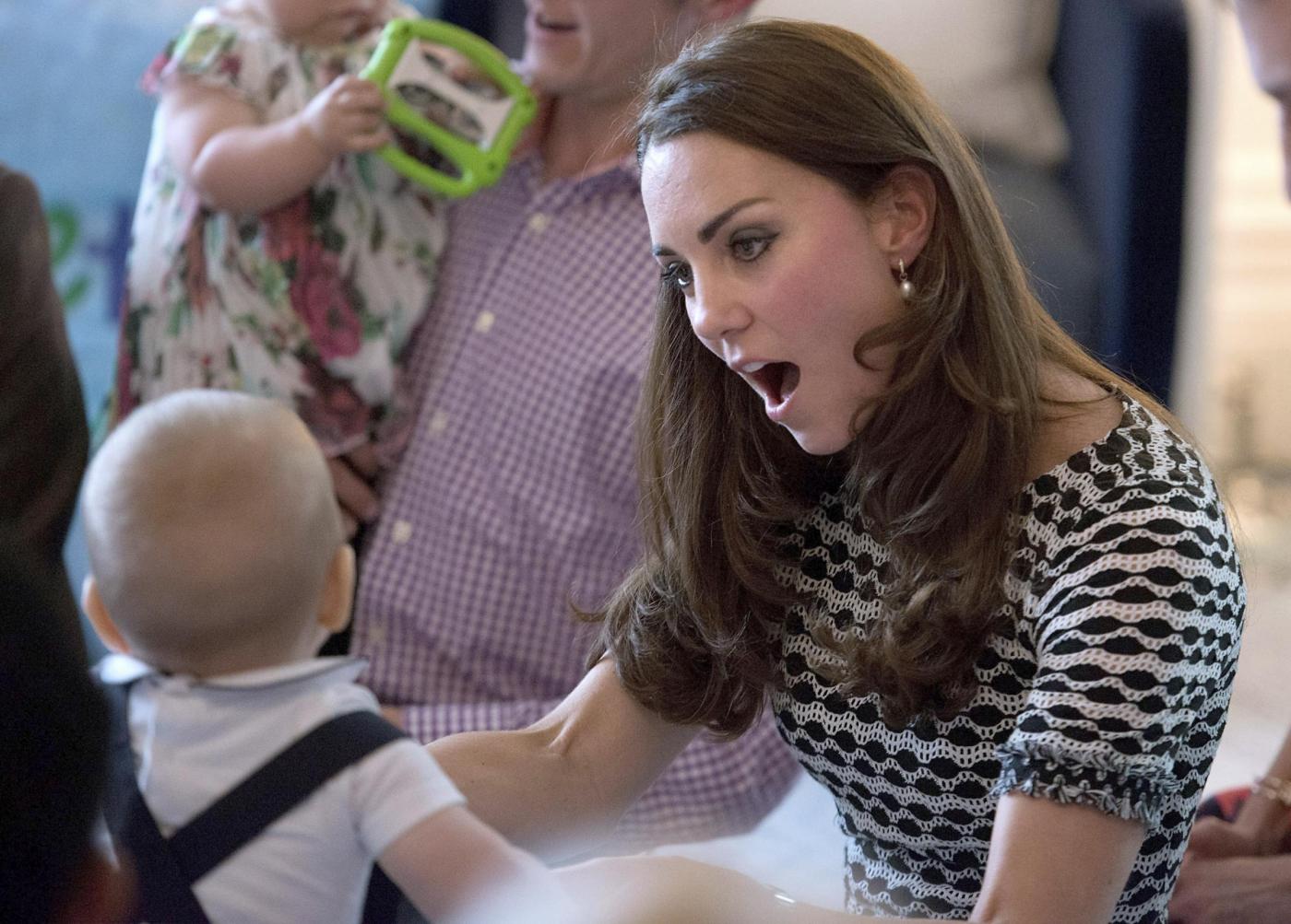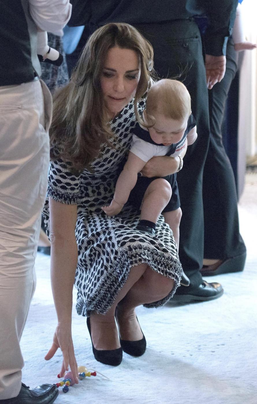 Britain's Kate, the Duchess of Cambridge, holds Prince George during a visit to Plunket nurse and parents group at Government House in Wellington, New Zealand, Wednesday, April 9, 2014. Plunket is a national not-for-profit organization that provides care for children and families in New Zealand. Prince William, Kate and their son, Prince George, are on a three-week tour of New Zealand and Australia. (AP Photo/Marty Melville, Pool) Britain's Prince George plays with the hair of his mother, Kate, the Duchess of Cambridge, during a visit to Plunket nurse and parents group at Government House in Wellington, New Zealand, Wednesday, April 9, 2014. Plunket is a national not-for-profit organization that provides care for children and families in New Zealand. Britain's Prince William, Kate and their son, Prince George, are on a three-week tour of New Zealand and Australia. (AP Photo/Marty Melville, Pool) Britain's Kate, the Duchess of Cambridge, holds Prince George during a visit to Plunket nurse and parents group at Government House in Wellington, New Zealand, Wednesday, April 9, 2014. Plunket is a national not-for-profit organization that provides care for children and families in New Zealand. Prince William, Kate and their son, Prince George, are on a three-week tour of New Zealand and Australia. (AP Photo/Marty Melville, Pool) Britain's Prince George, left, plays with his mother, Kate, the Duchess of Cambridge, during a visit to Plunket nurse and parents group at Government House in Wellington, New Zealand, Wednesday, April 9, 2014. Plunket is a national not-for-profit organization that provides care for children and families in New Zealand. Britain's Prince William, Kate and their son, Prince George, are on a three-week tour of New Zealand and Australia. (AP Photo/Marty Melville, Pool) Britain's Kate, the Duchess of Cambridge, holds Prince George and picks up a toy that the prince dropped during a visit to Plunket nurse and parents group at Government House in Wellington, New Zealand, Wednesday, April 9, 2014. Plunket is a national not-for-profit organization that provides care for children and families in New Zealand. Prince William, Kate and their son, Prince George, are on a three-week tour of New Zealand and Australia. (AP Photo/Marty Melville, Pool)