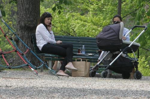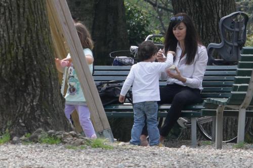 MILANO – Ilaria D’Amico in un parco di Milano insieme al figlio Pietro e ad un’amica.