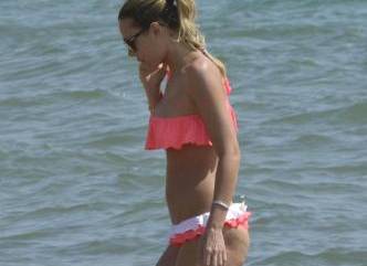Foto Mario Cartelli/LaPresse 15/07/2013 Sabaudia (LT) gossip Ilary Blasy trascorre la sua giornata in spiaggia in completo relax dedicandosi ad una lunga telefonata mentre i figli giocano in acqua. Nella foto: Ilary Blasi.