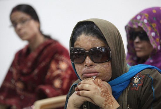 epa03614751 An unidentified victim of an acid attack attends a seminar in New Delhi, India on 08 March 2013 on the occasion of International Women's Day. The seminar was held to raise a voice against growing crimes against women in the country. EPA/ANINDITO MUKHERJEE