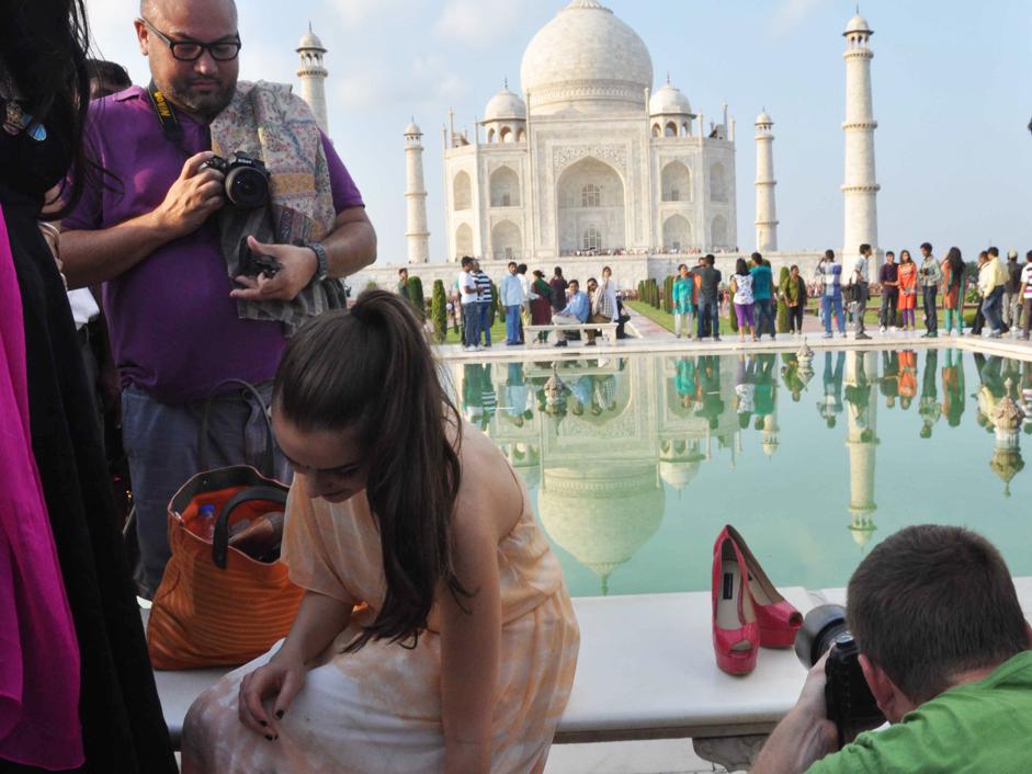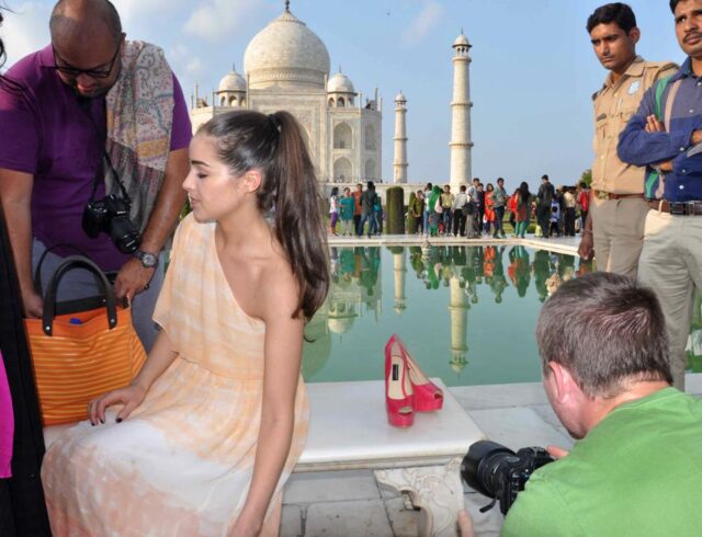 La ragazza, domenica scorsa ha girato un breve spot pubblicitario per una marca di calzature nell’area del Taj Mahal di Agra, luogo in cui ogni attività commerciale è tassativamente privata.