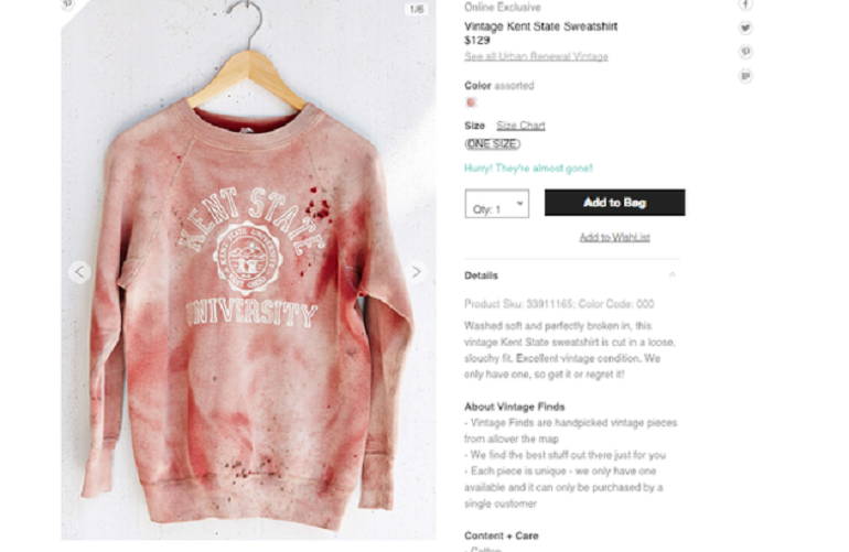 ROMA – Una felpa insanguinata con il logo di un’università americana. A lanciarla è stato Urban Outfitters, marchio Usa di abbigliamento specializzato proprio in felpe. Questa volta però, il modello lanciato ha il sapore del macabro e fa discutere. Urban Outfitters ne ha già commercializzate e venute migliaia sul web: il logo è quello della Kent State University, l’ateneo che il 4 maggio 1970 vide la morte di quattro studenti, uccisi dalla Guardia Nazionale mentre protestavano contro l’invasione statunitense della Cambogia. Proprio ispirandosi a questo tragico evento, è nata questa felpa con sangue finto e logo dell’università dell’Ohio in bella vista. Il tutto per un costo di “soli” 129 dollari.