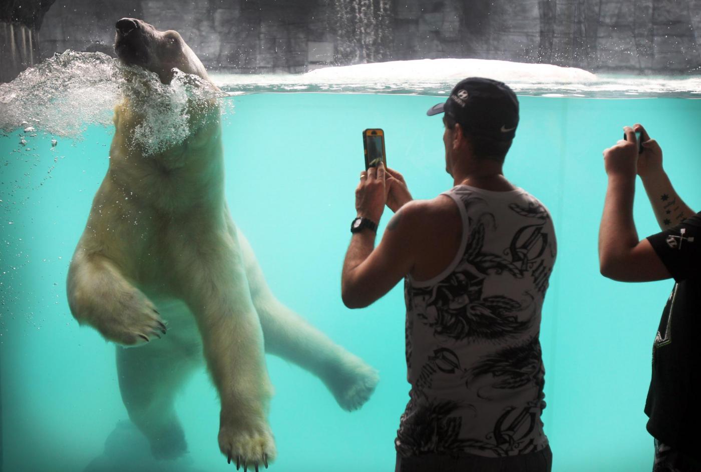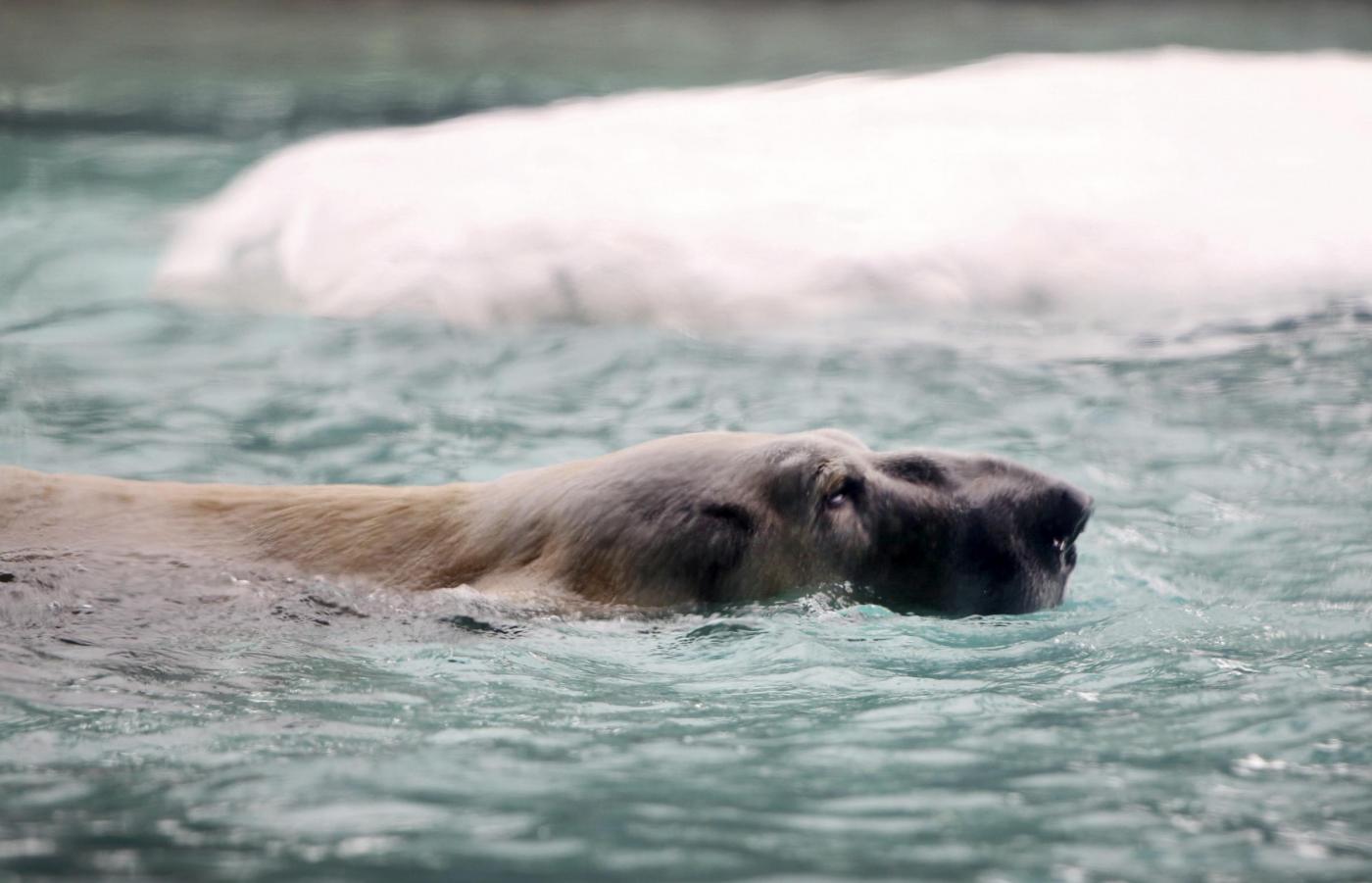All’interno della vasca di Inuka, c’è anche una grotta realizzata interamente con il ghiaccio (foto LaPresse)