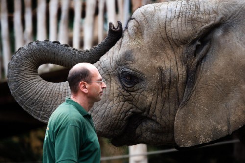 Inventario allo zoo di Dresda: gli inservienti misurano l’elefante
