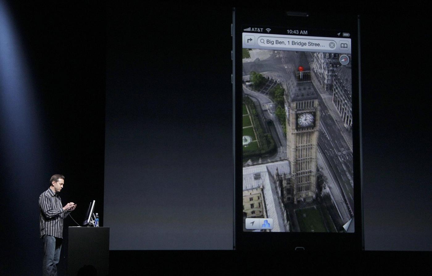 Scott Forstall, Apple's senior vice president of iOS Software, shows features on the iPhone 5 during an Apple event in San Francisco, Wednesday, Sept. 12, 2012. LaPresse 12-09-2012 Esteri Apple da San Francisco svela il nuovo iPhone5