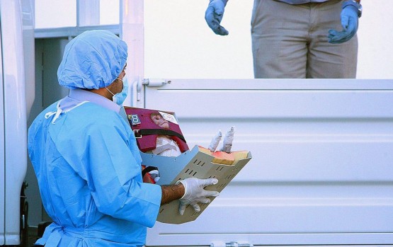 epa03560299 A picture made available on 29 January 2013 shows, an Iranian scientist carrying a live monkey at an unknown location 28 January 2013, Iran, which Iranian state media reported that returned alive to the Earth after it traveled in a capsule to the orbit. The locally designed capsule with the live monkey was lifted into orbit by a Kavoshgar carrier-rocket and recovered safely on the ground, Iranian state media quoted a statement by the country's aerospace organization as saying. EPA/STRINGER