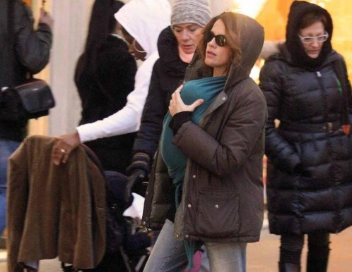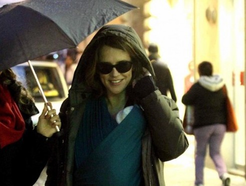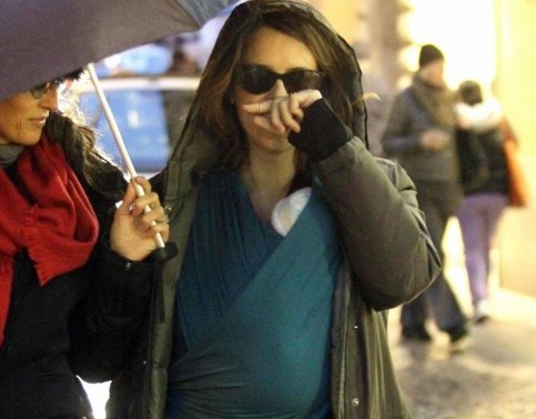 ROMA – Irene Ferri, protagonista con Raoul Bova della fortunata fiction “Intelligence-Servizi & Segreti”, passeggia tenendo teneramente nel marsupio il suo secondo figlio.