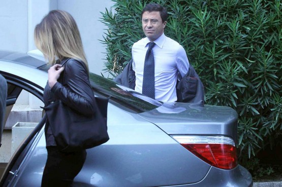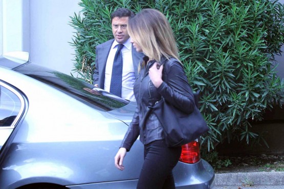 ROMA – Italo Bocchino esce dagli studi della Rai dove è stato ospite, accompagnato dalla sua nuova e giovanissima compagna Vanessa Benelli Mosell, di 21 anni più giovane di lui, che lo ha aspettato dietro le quinte della trasmissione.
