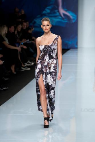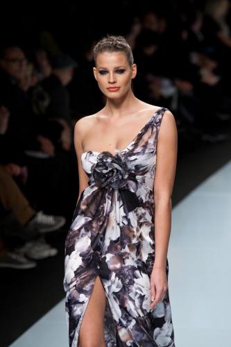 Milano – Ivana Mrazova torna alle passerelle per la settimana della moda milanese. Dopo aver calcato le scene del festival di Sanremo, la modella ceca è stata scelta da RoccoBarocco come indossatrice di punta per la presentazione della collezione autunno-inverno 2011/2012. Per lei, lo stilista ha selezionato un abito dalla fantasia floreale, con un’ampia scollatura monospalla, e vertiginoso spacco laterale che mette in risalto le sue lunghe gambe. (Foto Lapresse).