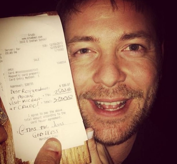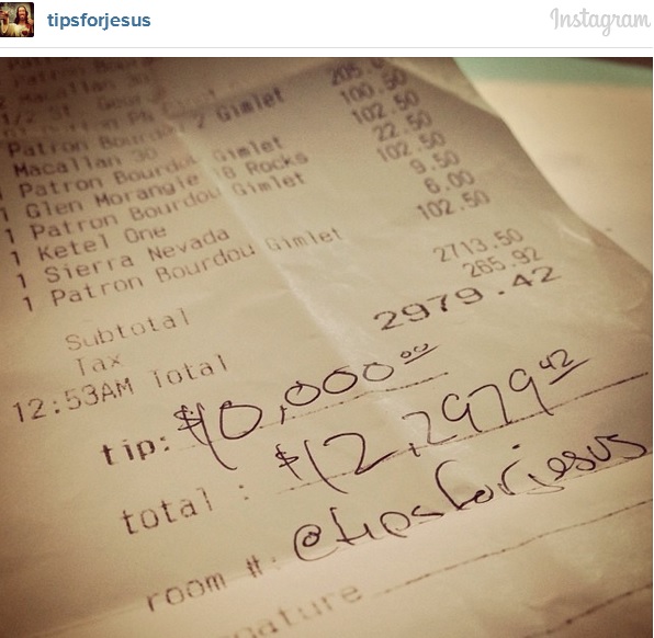 NEW YORK – Jack Shelby è il nome dell’uomo che per settimane ha elargito mance fino 10 mila dollari ai camerieri dei ristoranti degli Stati Uniti e del Messico. Shelby, un ex vice-presidente della Pay Pal, fa parlare di sé da 3 mesi, da quando cioè pubblica sull’account Instagram ‘Tips For Jesus’ – Mance per Gesù’ le foto degli scontrini con le sue mance super.