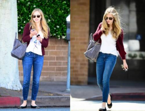 Amanda Seyfried a spasso per Los Angeles opta per un jeans stretto a sigaretta, ballerine, maglietta bianca e pullover bordeaux. Molto fashion!Amanda Seyfried a spasso per Los Angeles opta per un jeans stretto a sigaretta, ballerine, maglietta bianca e pullover bordeaux. Molto fashion!