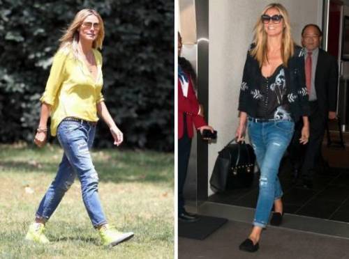 La super mamma-modella Heidi Klum adora i jeans boyfriend. Li abbina rigorosamente a scarpe basse (meglio se di colore a contrasto) e risvolto. La super mamma-modella Heidi Klum adora i jeans boyfriend. Li abbina rigorosamente a scarpe basse (meglio se di colore a contrasto) e risvolto.