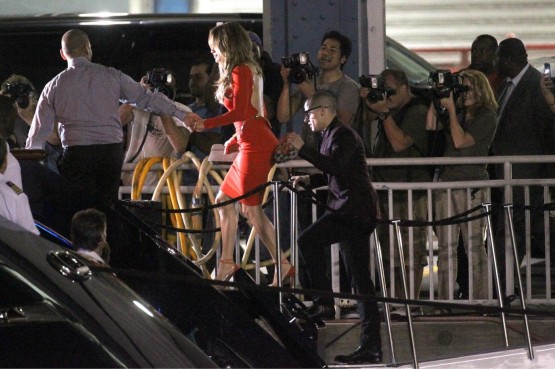 Lei era stretta in un abito rosso firmato da Tom Ford completamente accollato davanti con una profonda scollatura sulla schiena. J Lo era ha poi festeggiato i suoi 43 anni spegnendo le candeline su una torta rosa a forma di orsacchiotto gigante con la scritta: “Cucciola, buon compleanno!”. La cantante e il suo toyboy hanno poi ballato tutta la notte circondati dagli amici.