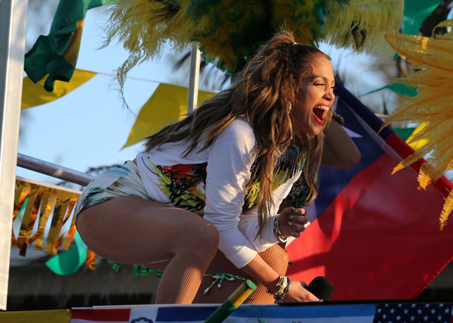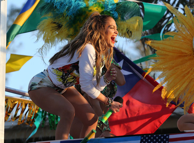LOS ANGELES – Sexy e divertita: Jennifer Lopez non ha proprio bisogno di nascondere l’età, anzi. Fa benissimo a mostrare i suoi 45 anni: la cantante portoricana in questi giorni è impegnata a registrare il video della canzone “We are one”, inno ufficiale dei prossimi Mondiali di calcio in Brasile.