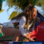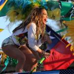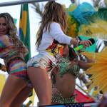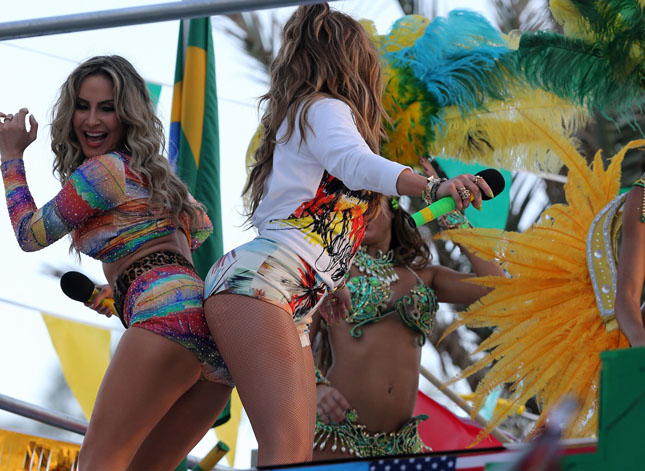 Nelle foto eccola con succinti pantaloncini mentre canta e balla con gli altri due cantanti: Pitbull e Claudia Leite.