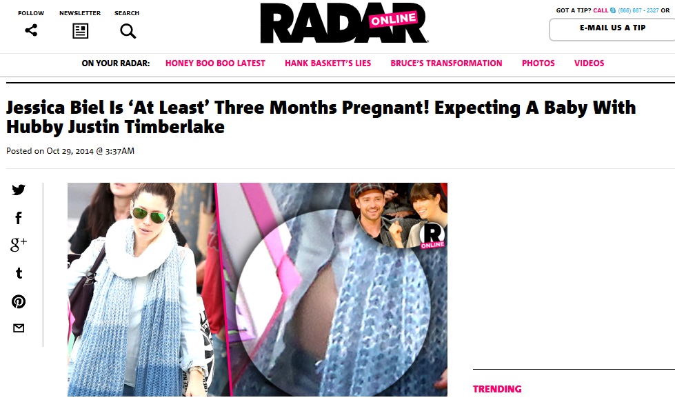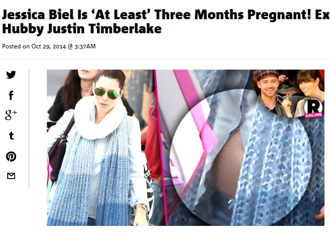 Radar Online, d’altro canto, pubblica una foto in cui la Biel mostra inequivocabili rotondità…