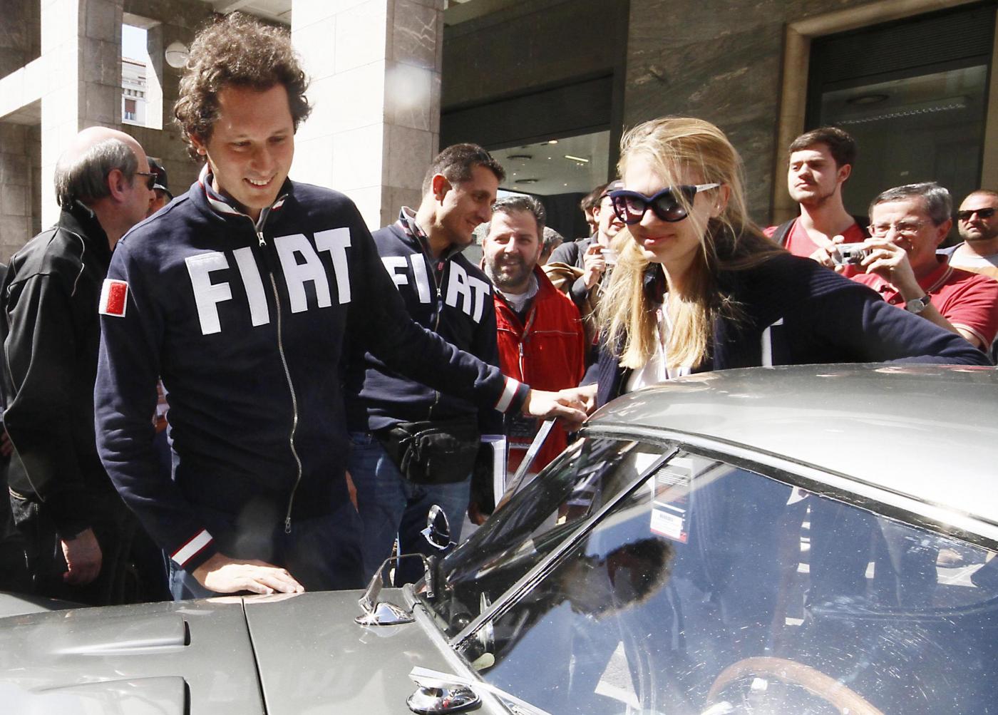 John Elkann e Lavinia Borromeo alle Mille Miglia (foto LaPresse):