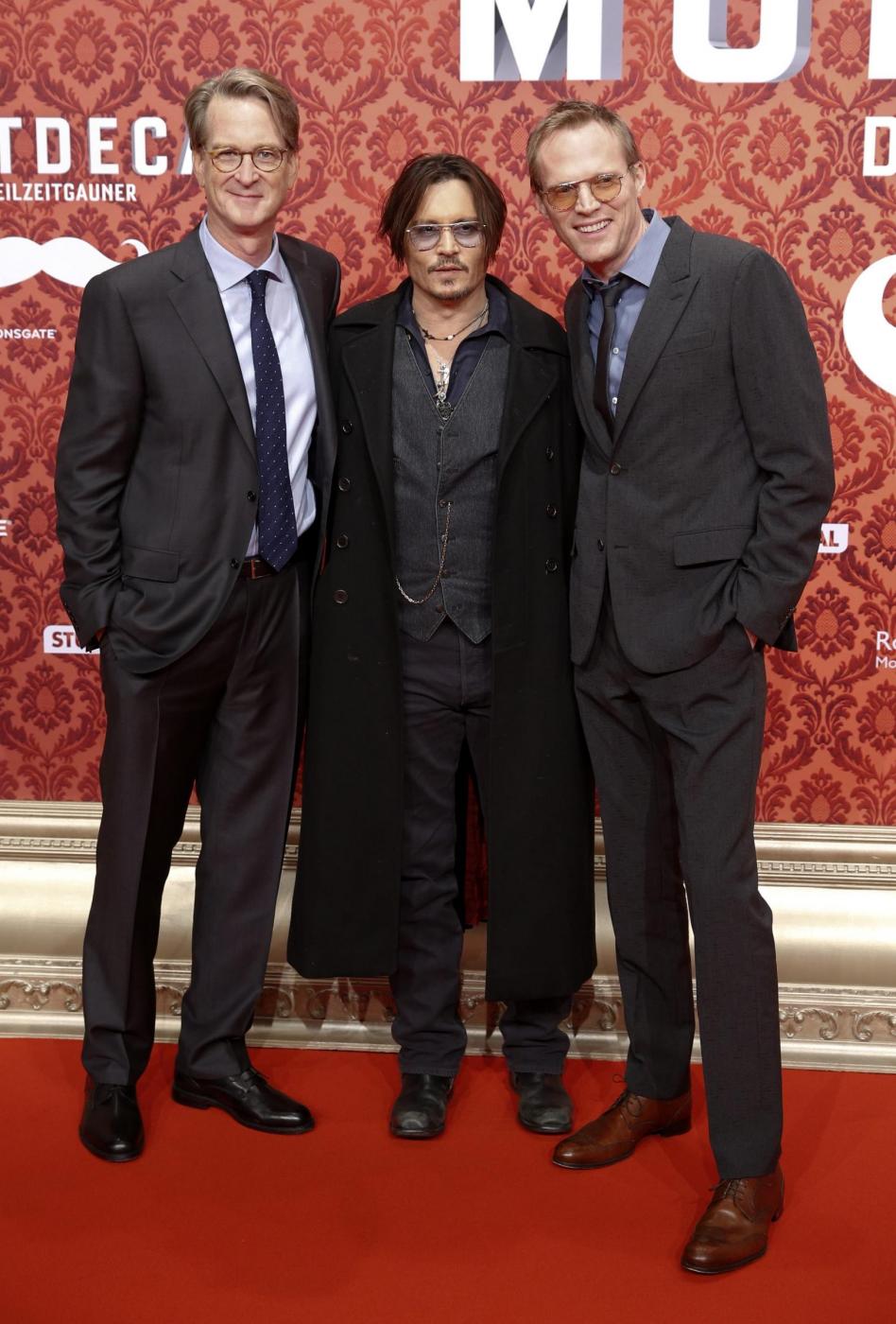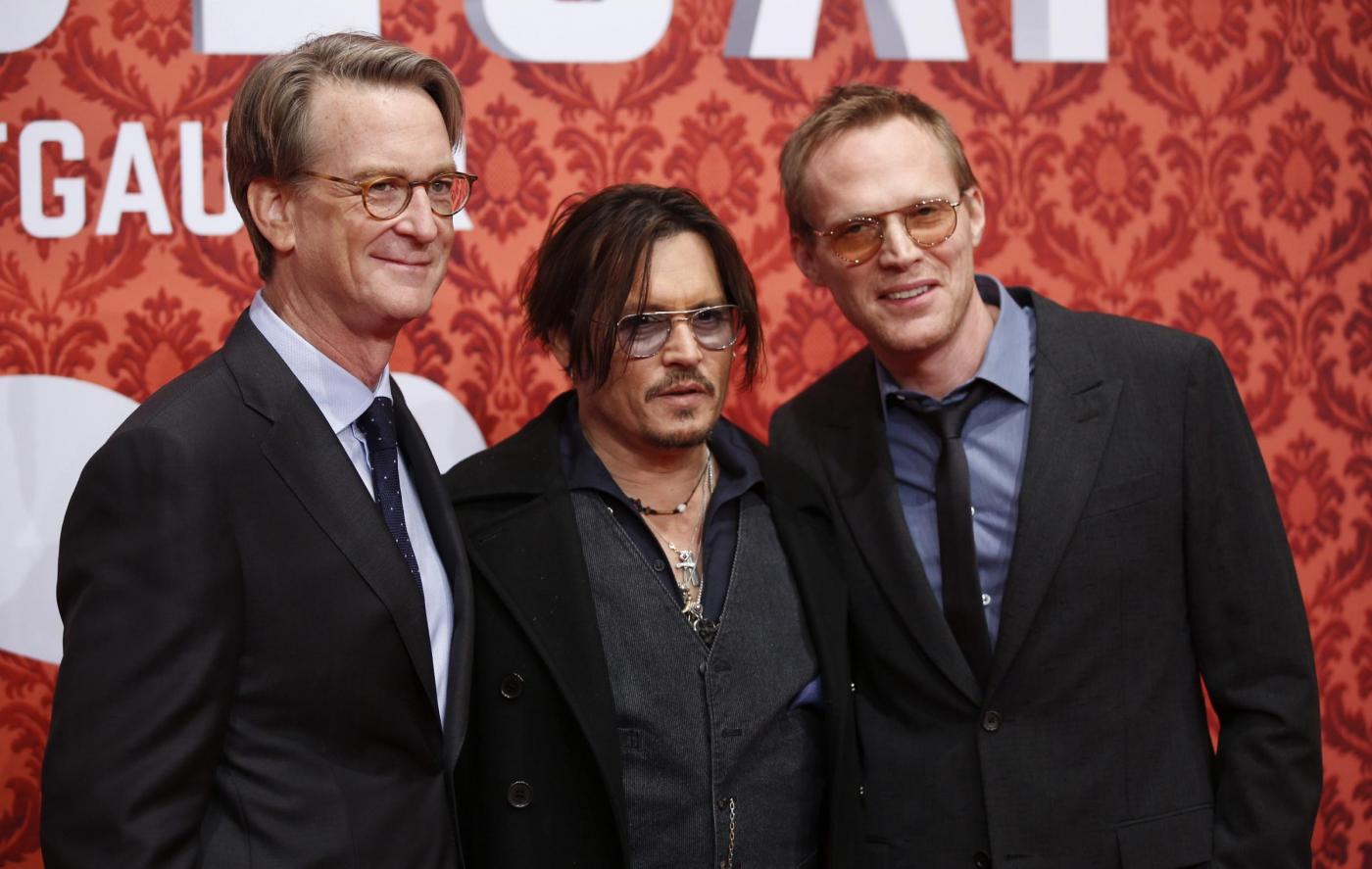 Director David Koepp (L-R) and cast members Paul Bettany and Johnny Depp arrive for the world premiere of "Mortdecai" in Berlin January 18, 2015. REUTERS/Fabrizio Bensch (GERMANY - Tags: ENTERTAINMENT)