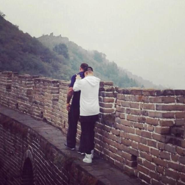Nelle ultime foto pubblicate, Justin si fa immortalare mentre viene accompagnato in braccio sulla Grande Muraglia dalle sue guardie del corpo. Biber, in un’istantanea cammina sul bordo del muro accompagnato da una guida.