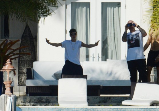 January 28, 2013: Justin Bieber shows off his abs for the waiting paparazzi in Miami, Florida. INFphoto/LaPresseOnly ItalyRef: infusmi-11/13|sp|