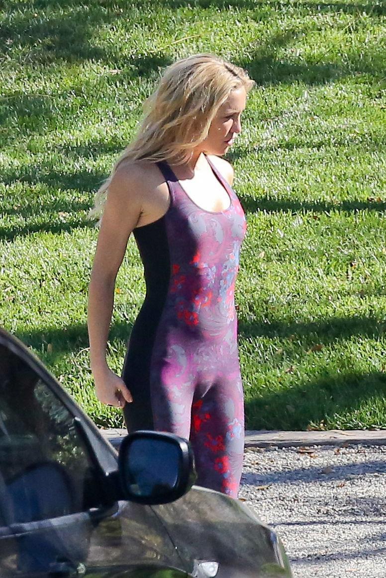 MALIBU’ (CALIFORNIA, STATI UNITI) – Kate Hudson si prepara a realizzare un servizio fotografico a Malibù, indossando una sexy tutina aderente che scolpisce il suo corpo, facendola apparire praticamente nuda. Anzi più che nuda, l’attrice mostra un sexy “cameltoe”, parola che in slang americano, come scrive Wikipedia “identifica la visibilità della vulva umana attraverso gli indumenti”.