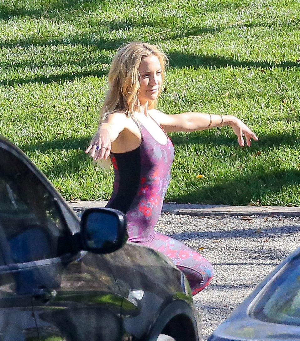 Kate Hudson con una tuta super aderente durante un photoshootKate Hudson suffers a wardrobe malfunction promoting tight sportswear during photoshoot in Malibu X17online.comLaPresse -- Only Italy