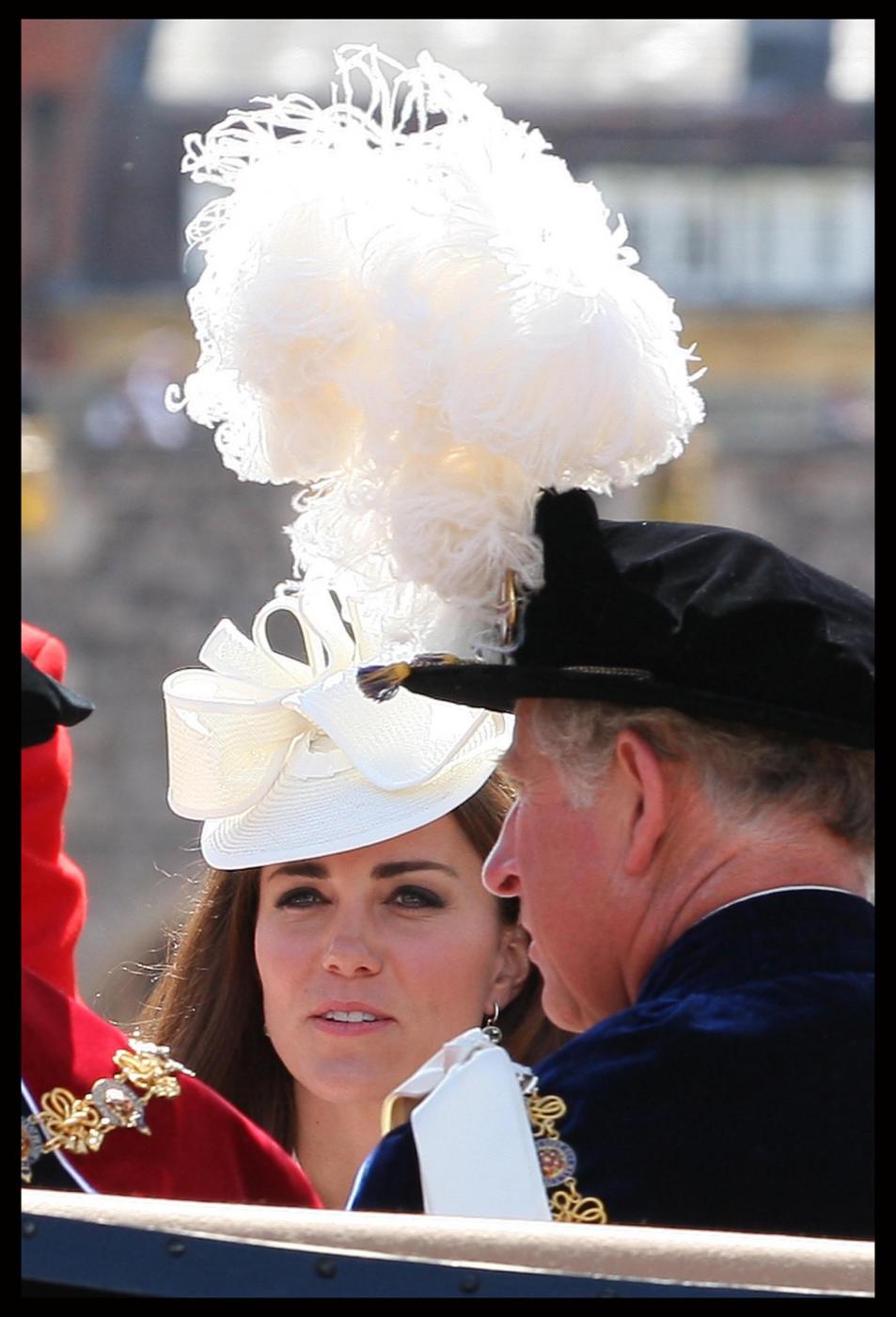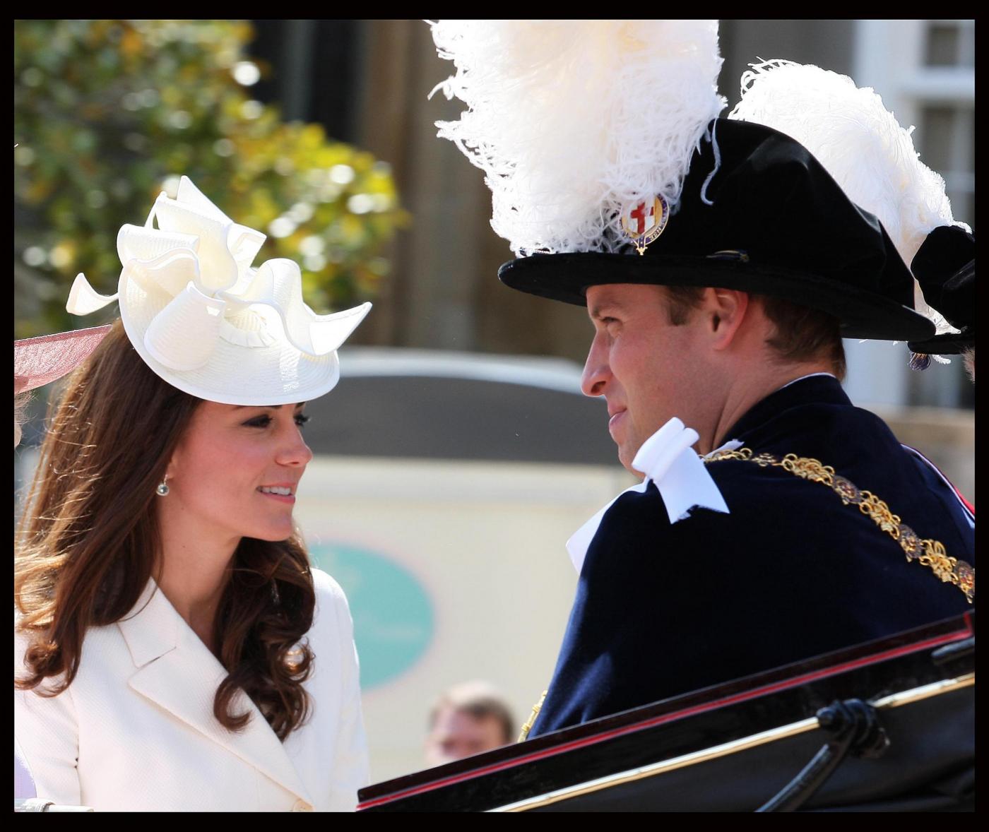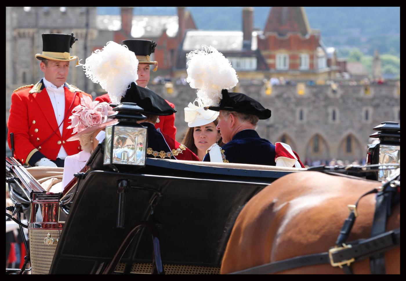 LONDRA – La duchessa di Cambridge sfila sulla carrozza reale insieme al Principe William e ad Elisabetta II per le celebrazioni dell’Ordine della Giarrettiera. Kate per l’evento sceglie un vestito e un cappello bianco.