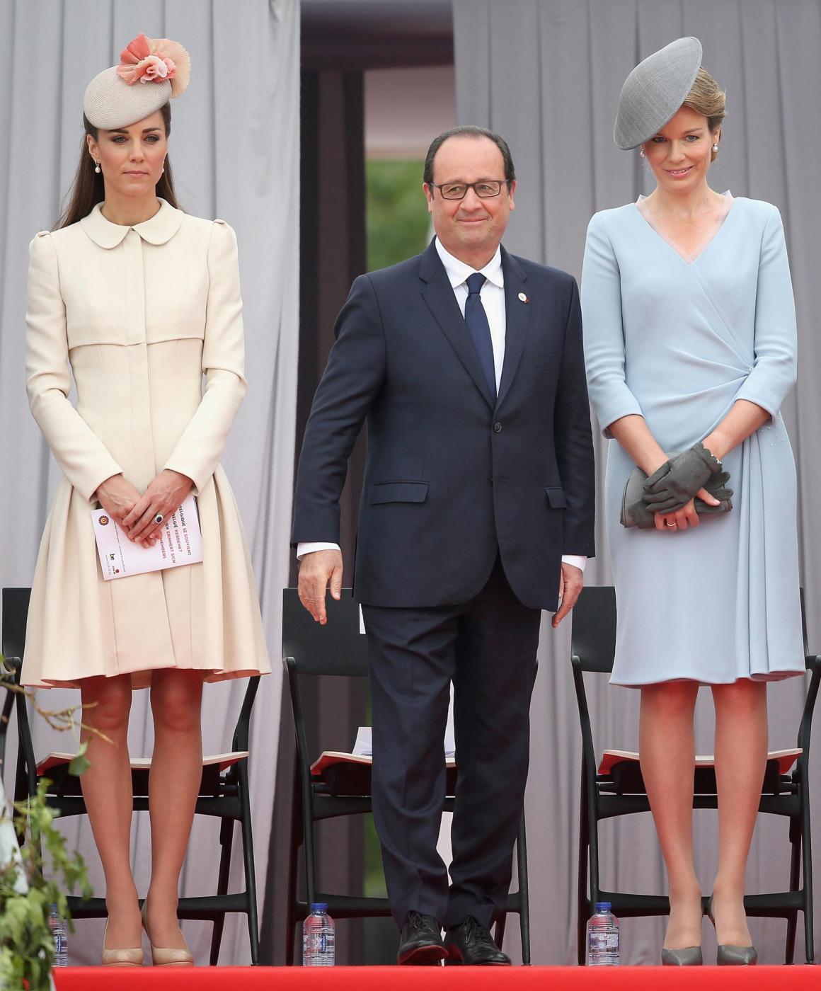 Foto: La PresseAttending a ceremony to commemorate the centenary of the start of the First World War, with left-right, Britain's Duchess of Cambridge, French President Francois Hollande and Queen Mathilde of Belgium, at the Cointe Inter-allied Memorial, Liege, Belgium, commemorating the 100th anniversary of the start of the First World War, Monday Aug. 4, 2014. The ceremony pays homage to the victims of the First World War, both soldiers and civilians, from Belgium and abroad, who lost their lives on Belgian soil .(AP Photo / Chris Jackson, Pool)
