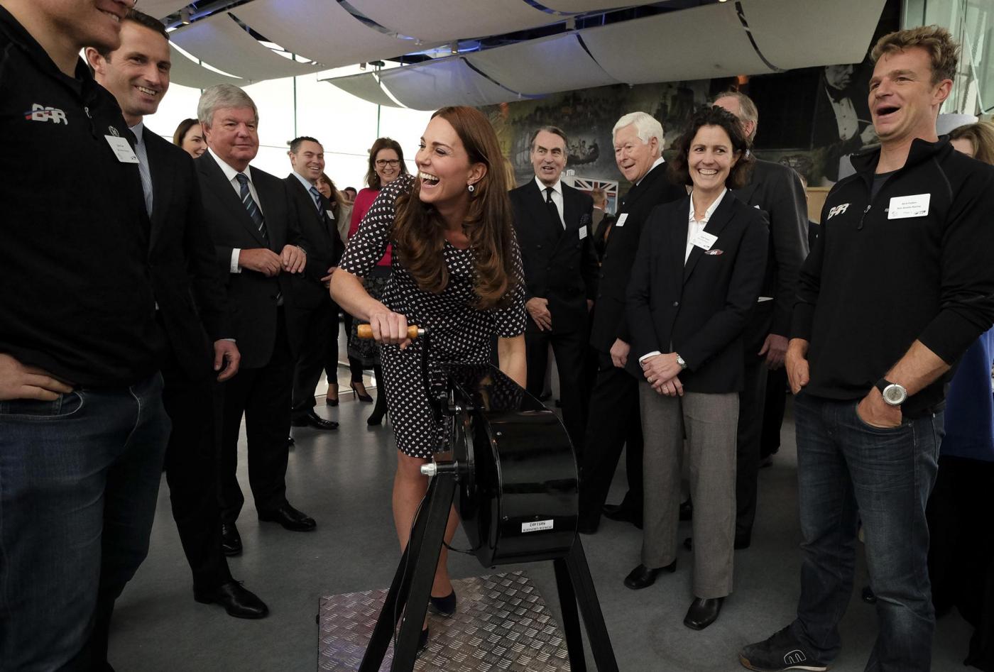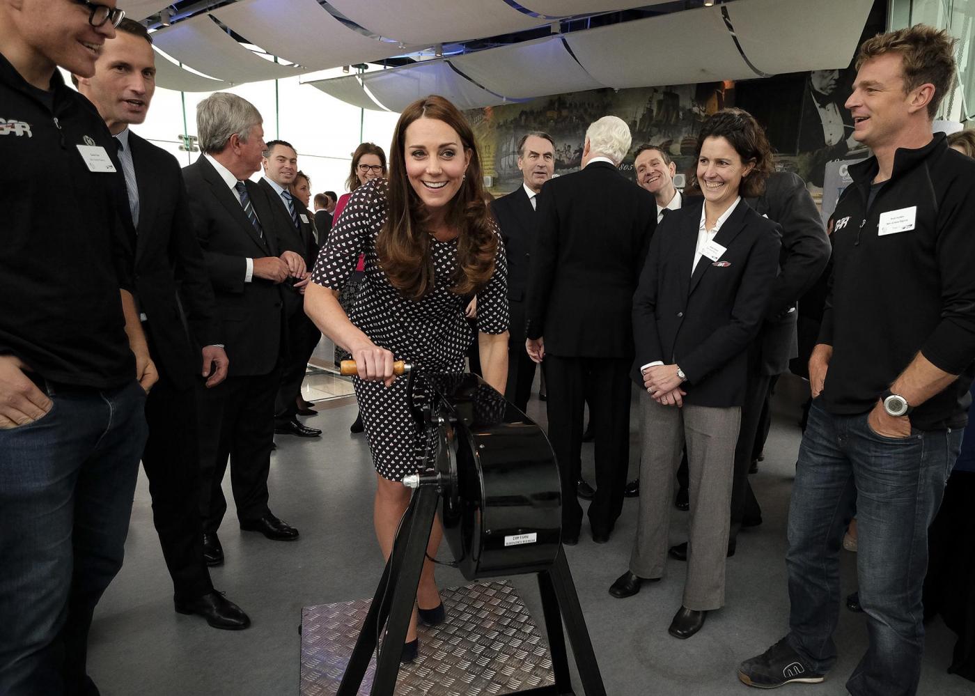 The Duchess of Cambridge tries a sailing winch simulator while on a visit to the Spinnaker Tower, Gunwharf Quays in Portsmouth, Hampshire. PRESS ASSOCIATION Photo. Picture date: Thursday February 12, 2015. See PA story ROYAL Kate. Photo credit should read: Christopher Pledger/Daily Telegraph/PA Wire