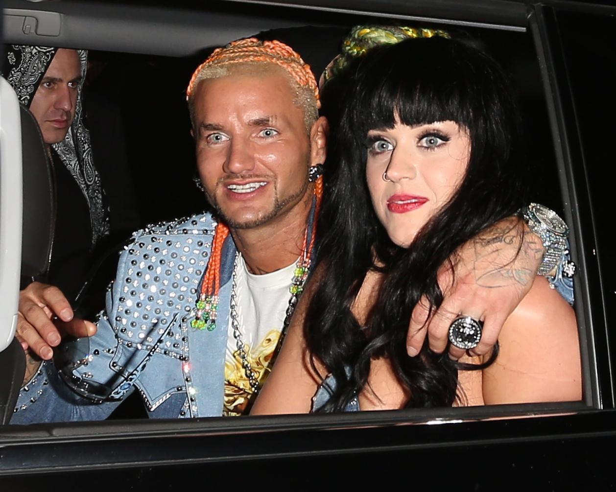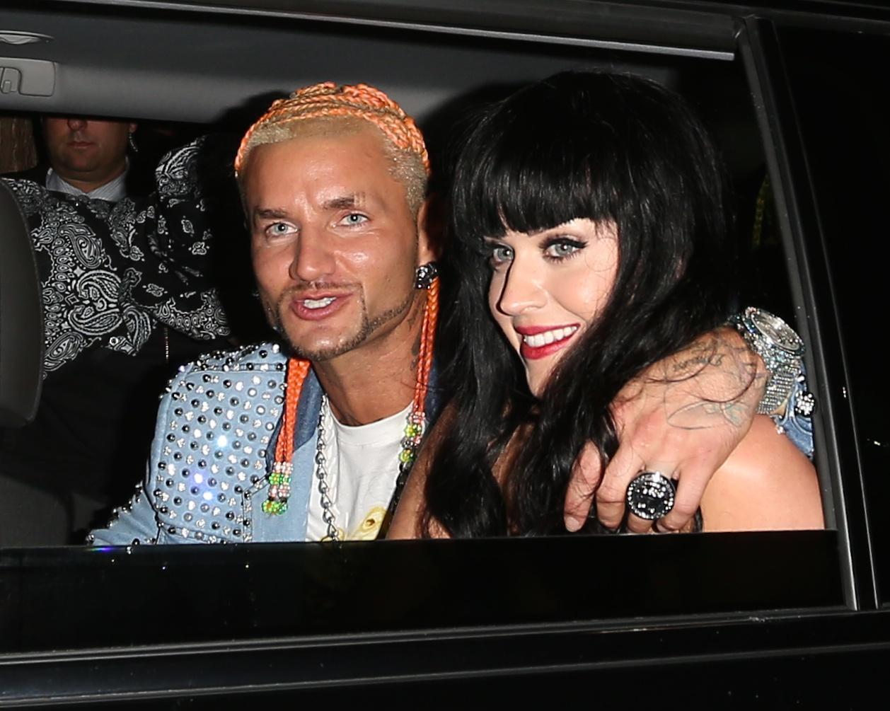 Foto: La PresseKaty Perry and her new boyfriend Riff Raff walk arm-in-arm after having dinner at Mastro's Steakhouse restaurant in Beverly Hills on Sunday night after the MTV Video Music Awards. They wore matching outfits.Job: 082514X6 August 2014 Beverly Hills, CANpg/LaPresseOnly Italy