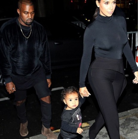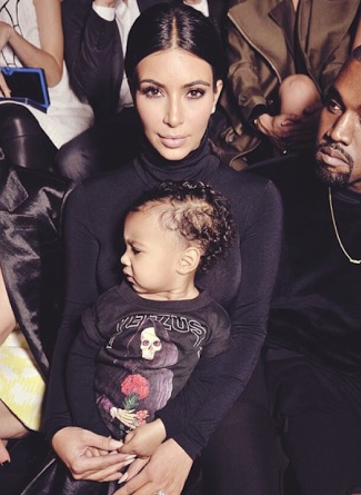 E stata fotografata nel front row della sfilata di Balenciaga, mentre sedeva comodamente sulle ginocchia di mamma Kim e al fianco di papà Kanye West. Tutti e tre i membri della famiglia indossavano un look total black. North non è passata inosservata per il suo outfit: mini gonna di pelle, leggings, stivali Timberland e una felpa firmata Yeezus.