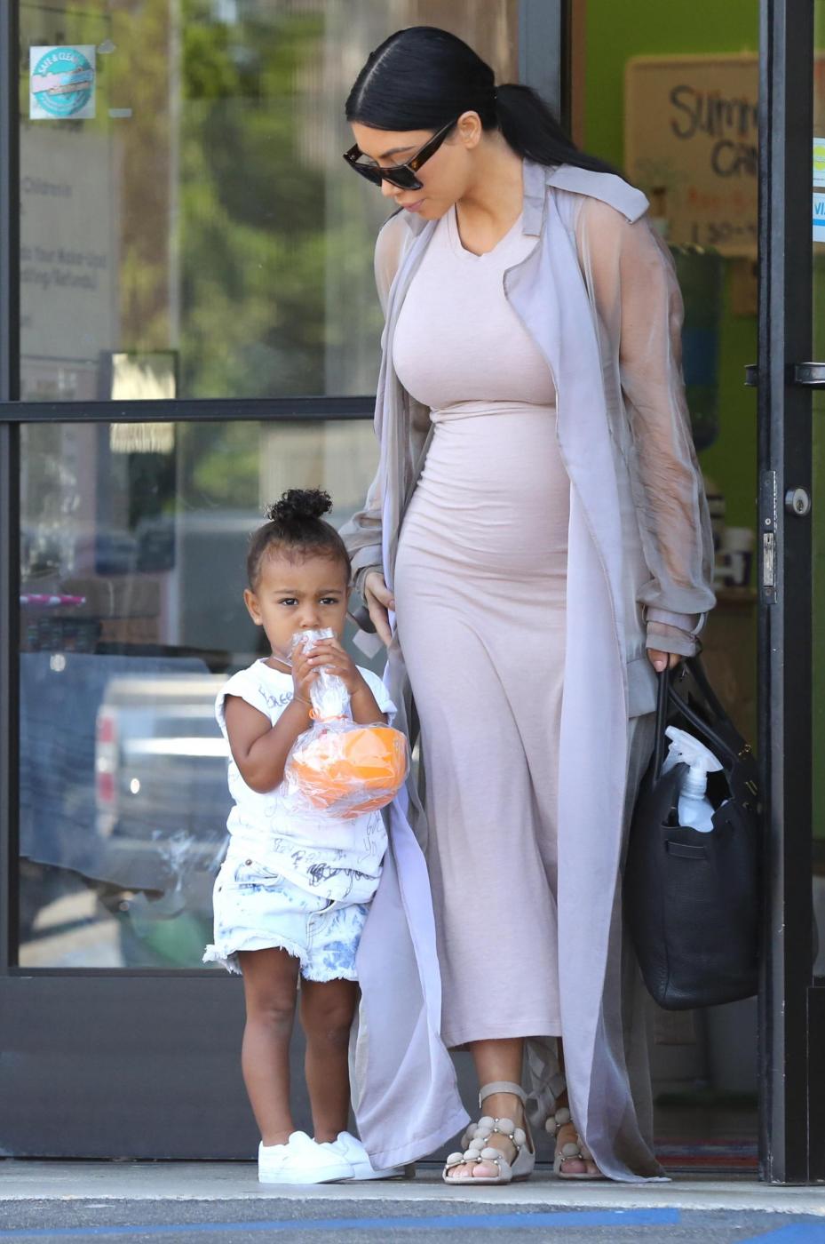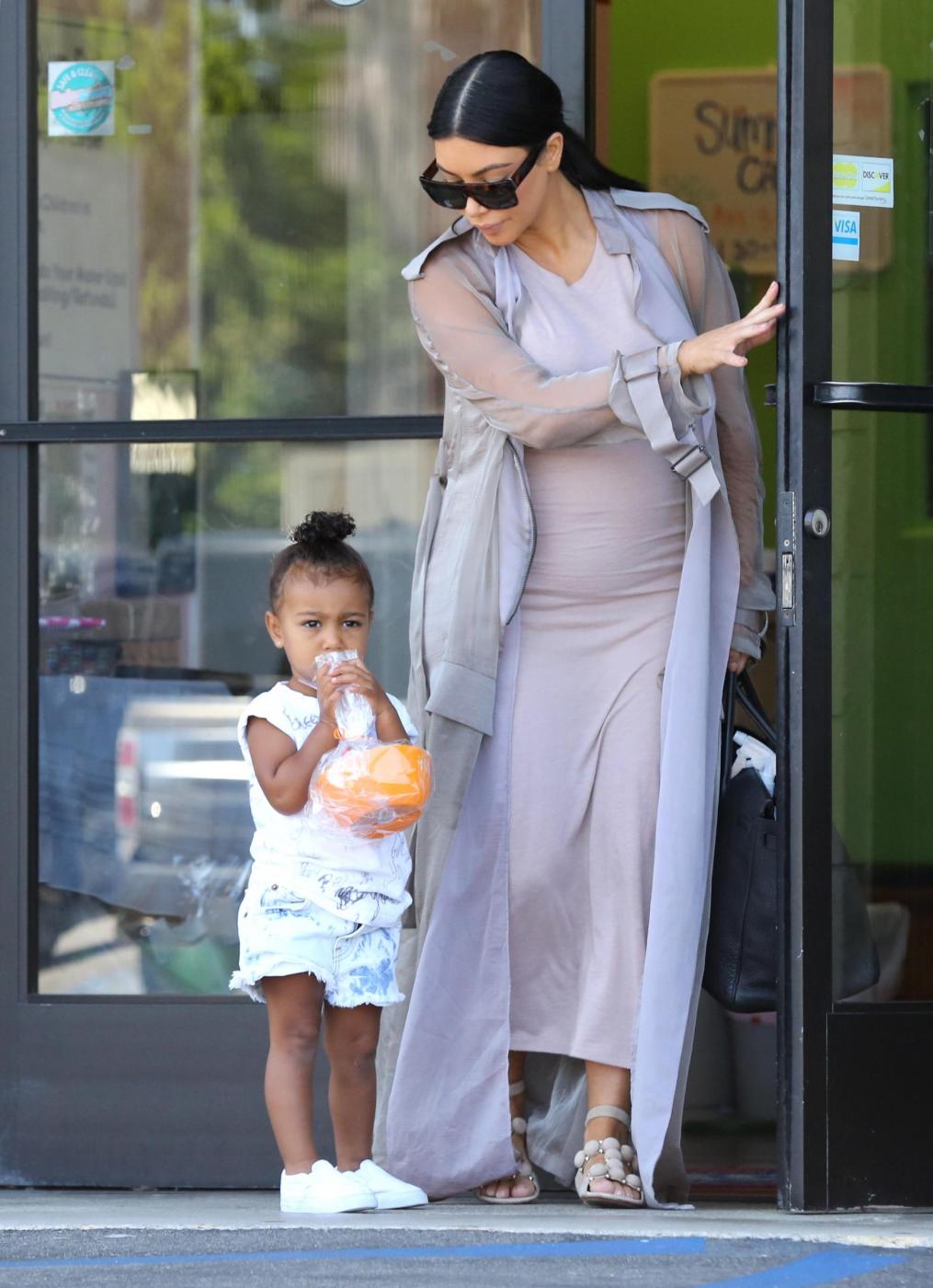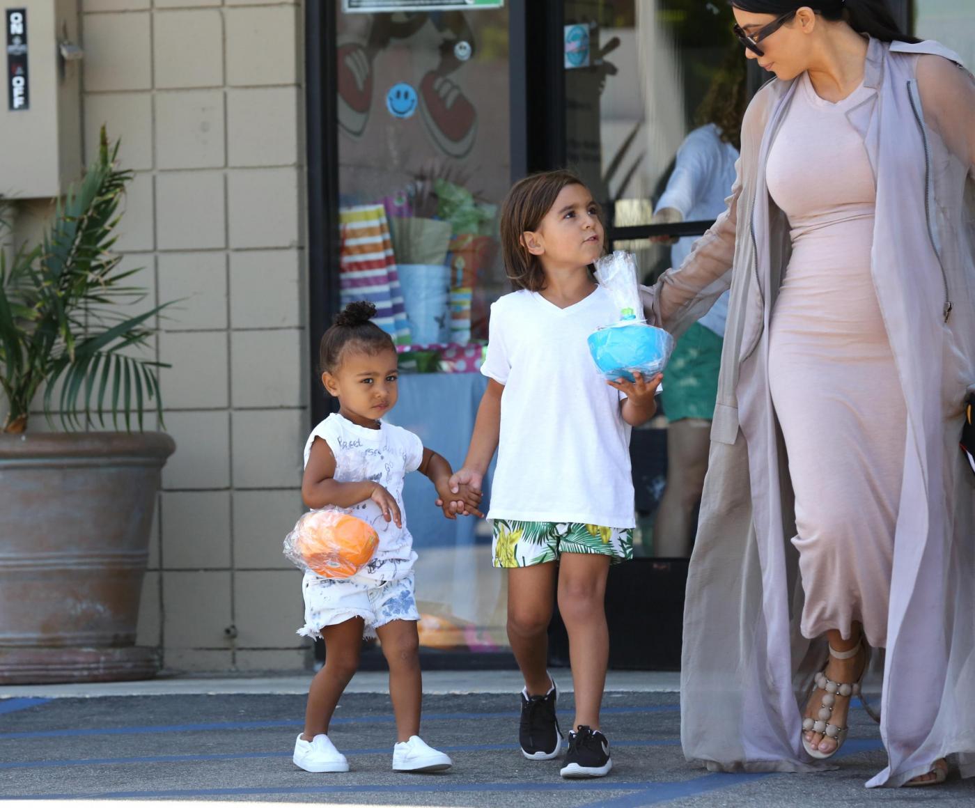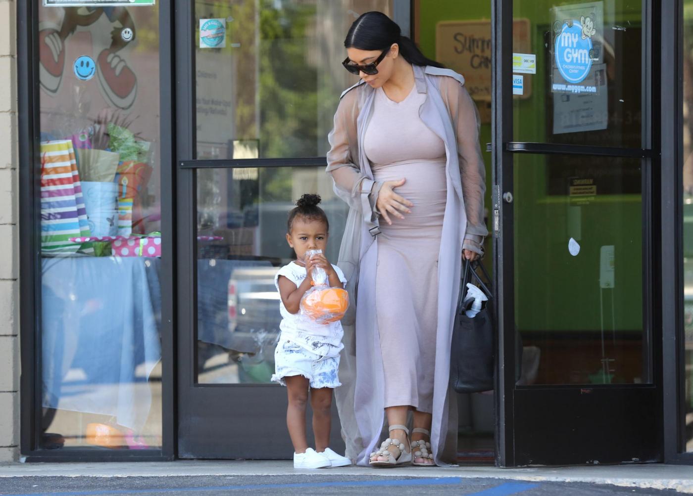 Kim Kardashian col pancione va a passeggio con la figliaPregnant Kim Kardashian holds her belly as she leaves My Gym with adorable daughter Nori and nephew Mason Disick in Calabasas, CA after attending classes with Kourtney Kardashian and son Reign Disick. Mason holds his younger cousin's hand as they walk to their car. X17online.comLaPresse -- Only Italy