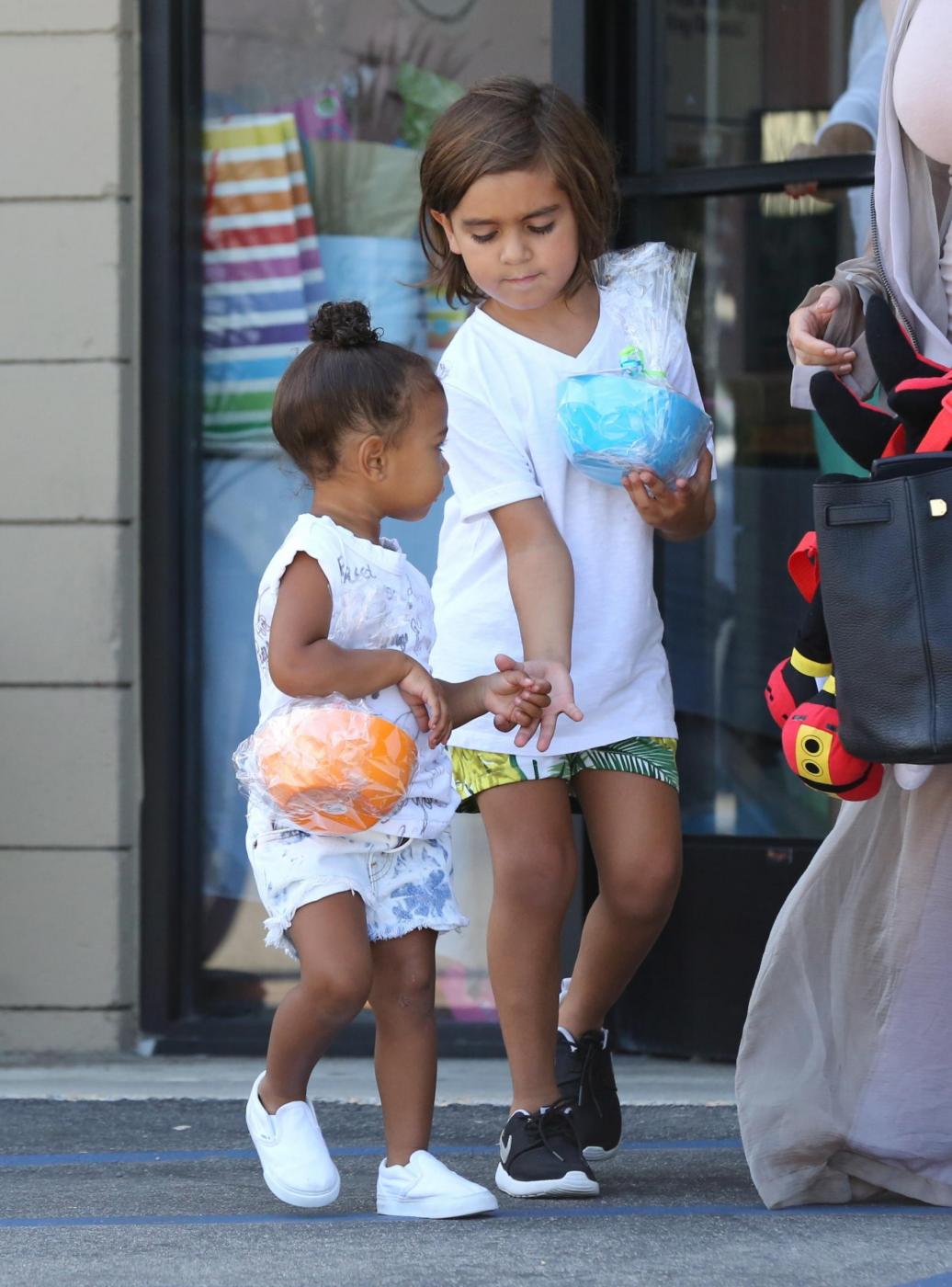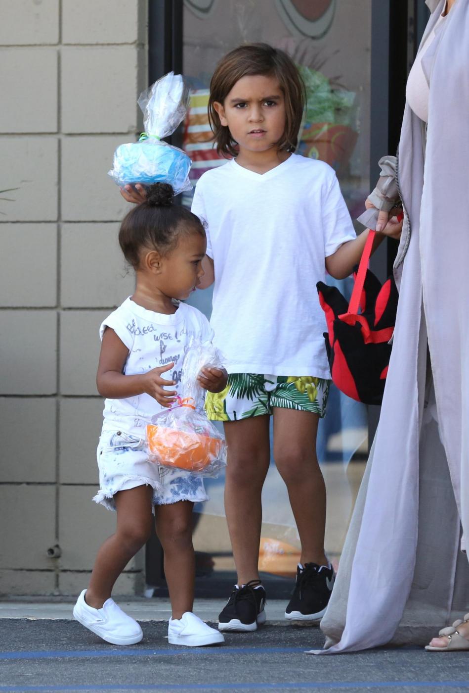 Nella gallery Kim fa una passeggiata con la figlia e con il nipotino Mason, il figlio della sorella Kourtney che proprio nelle scorse settimane ha annunciato la separazione dal compagno Scott Disick. (Foto Lapresse).