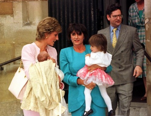 HRH PRINCESS OF WALES with Dominic Lawson and wife at the christening of their daughter 03.07.1995.