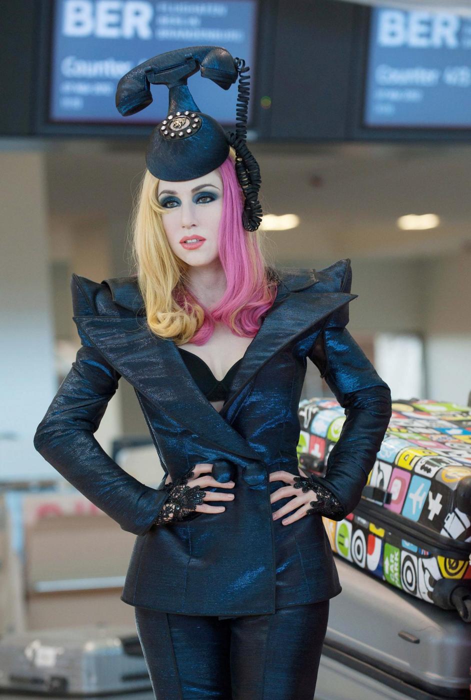 The wax figure of U.S Pop singer Lady Gaga stands at Berlin's Airport 'Berlin Brandenburg', Berlin, Wednesday, March 7, 2012. Madame Tussauds in London had lent the figure to Madame Tussauds in Berlin for a couple of weeks. (AP Photo/dapd/ Paul Zinken)