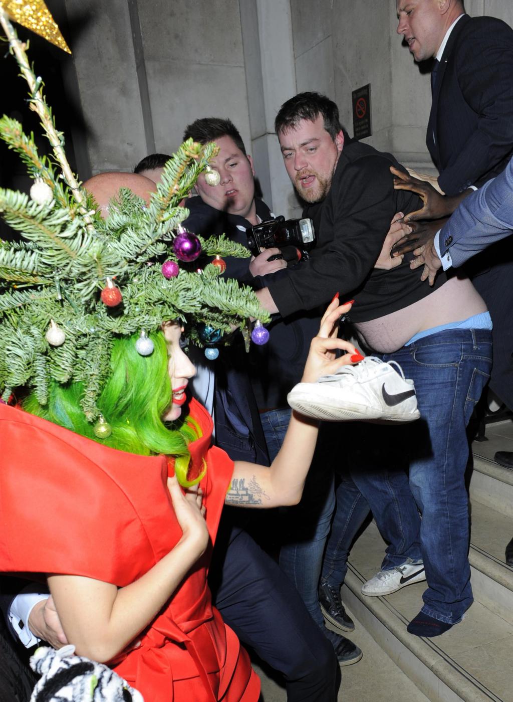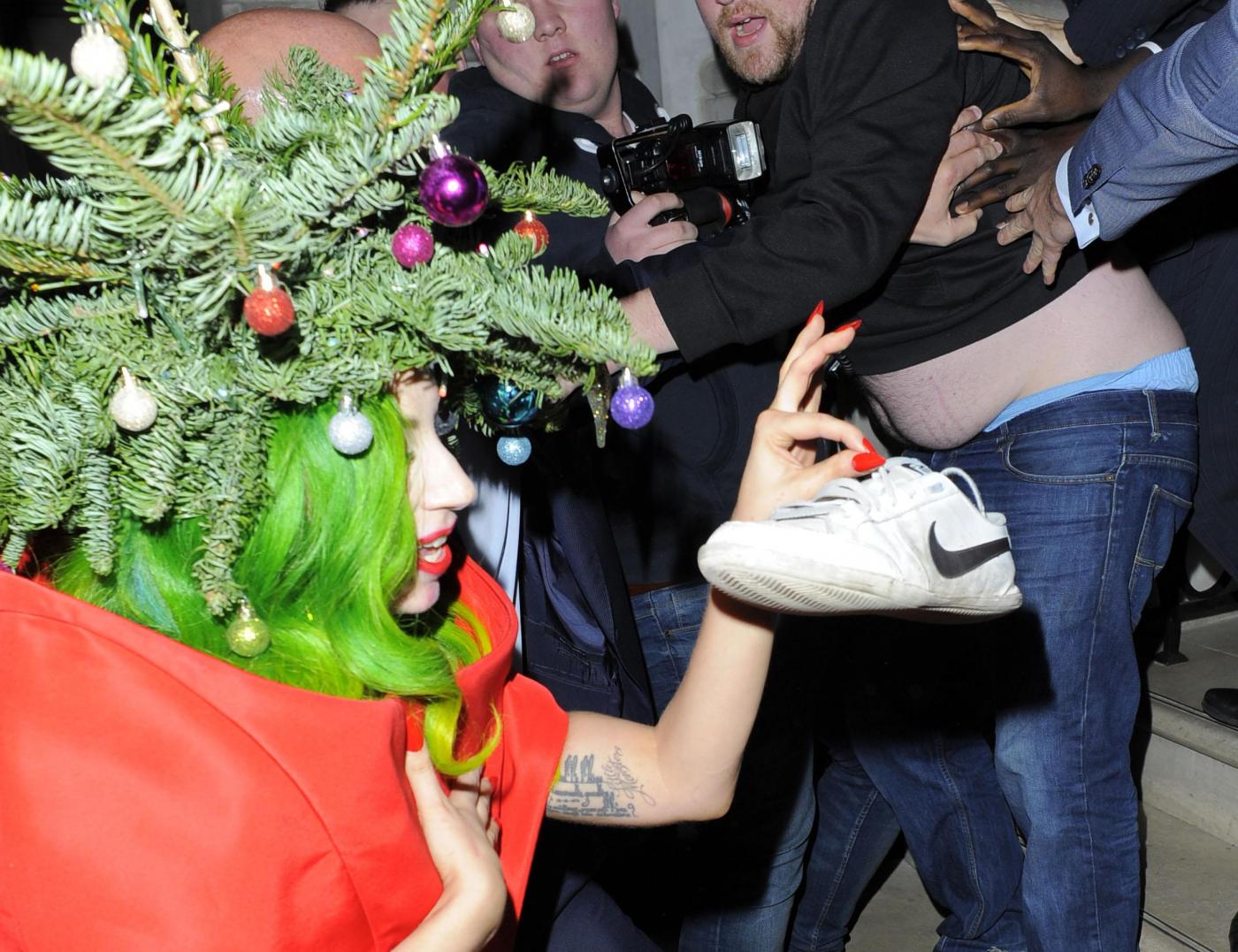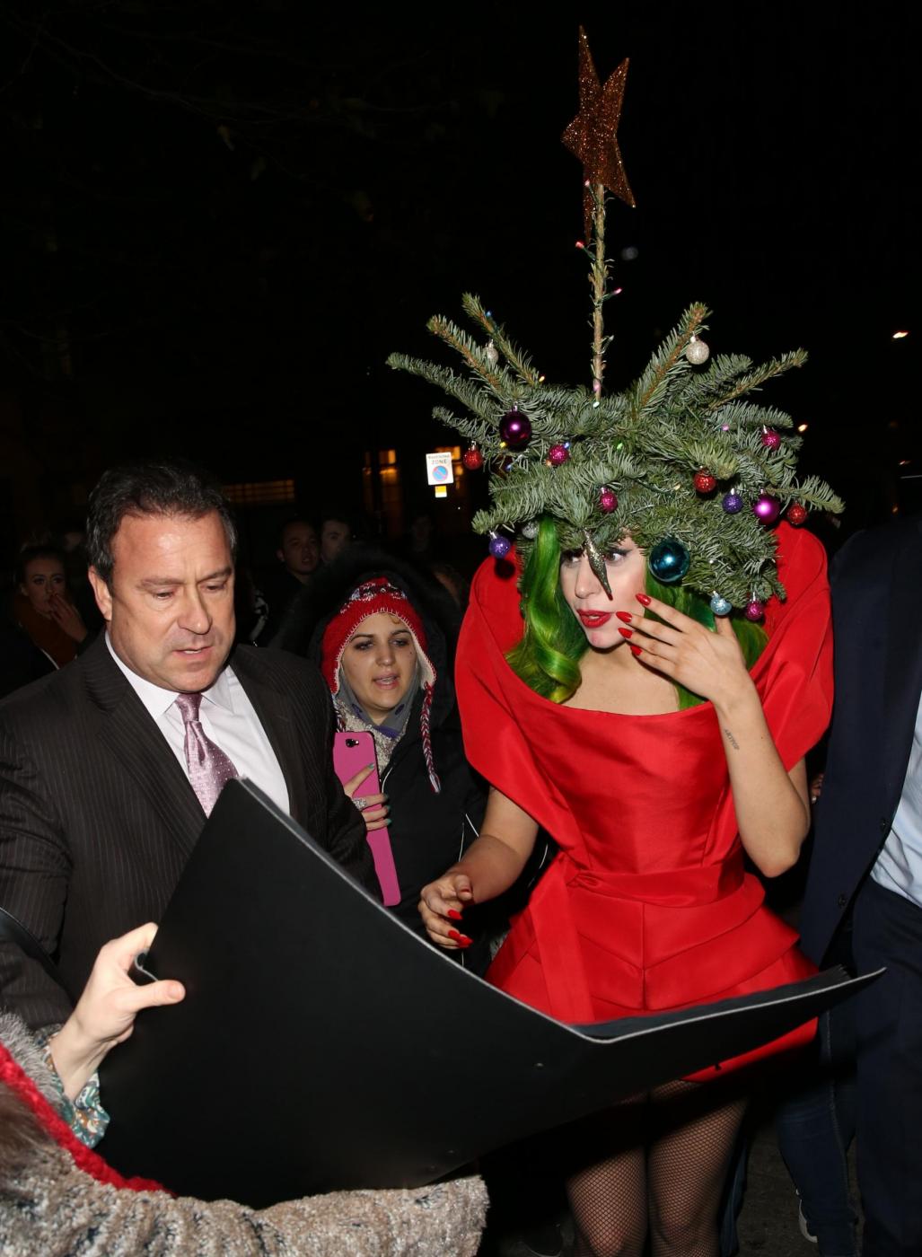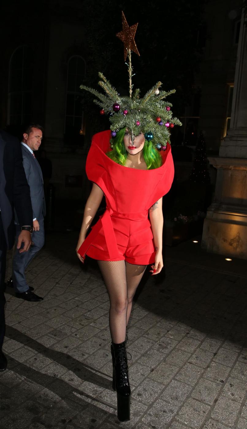 LONDRA – Si avvicina il Natale e Lady Gaga si veste a tema. La cantante, è stata fotografata a Londra mentre si mostra ai fan vestita da albero di Natale con rami e palline colorate in tesata.