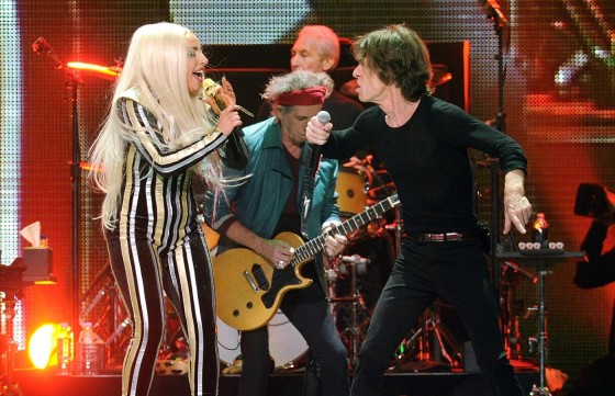 Singer Lady Gaga performs with The Rolling Stones at the Prudential Center in Newark, NJ on Saturday, Dec. 15, 2012. (Photo by Evan Agostini/Invision/AP)