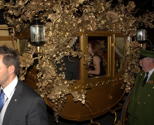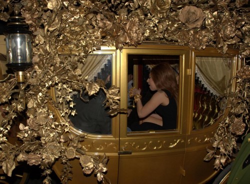 Insolito il suo look: dopo centinaia di apparizioni bizzarre e originalissime, sembra che la reginetta del pop stia ora svoltando verso un look più sobrio ed elegante. Per l’occasione ha infatti scelto un lungo abito nero, capelli sciolti e viso scoperto con poco trucco. Per impreziosire il tutto: vistosi gioielli d’oro sulle mani. Il tocco di originalità questa volta Lady Gaga l’ha riservato al mezzo con cui è arrivata all’evento: una carrozza trainata da cavalli neri, esattamente come il suo profumo, che a contatto con la pelle diventa invisibile.