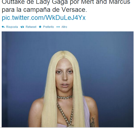 Un “little monster” di Gaga è poi entrato in possesso delle foto originali pubblicando su Twitter una serie di outtake dal servizio realizzato da Mert and Marcus. Qui, la popstar italo americana appare in forma decisamente meno smagliante rispetto alle foto promozionali diffuse all’inizio del 2014.