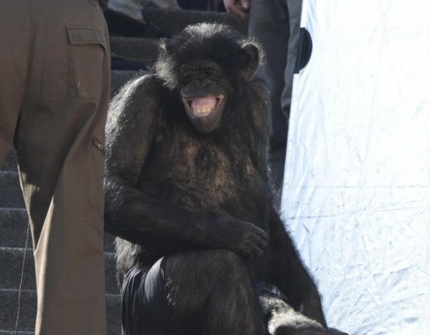 La compagnia di stefano Accorsi, oltre ad un elegante abito nero lungo e sfrangiato, per l’occasione era accompagnata da un simpatico scimpanzé (LaPresse):
