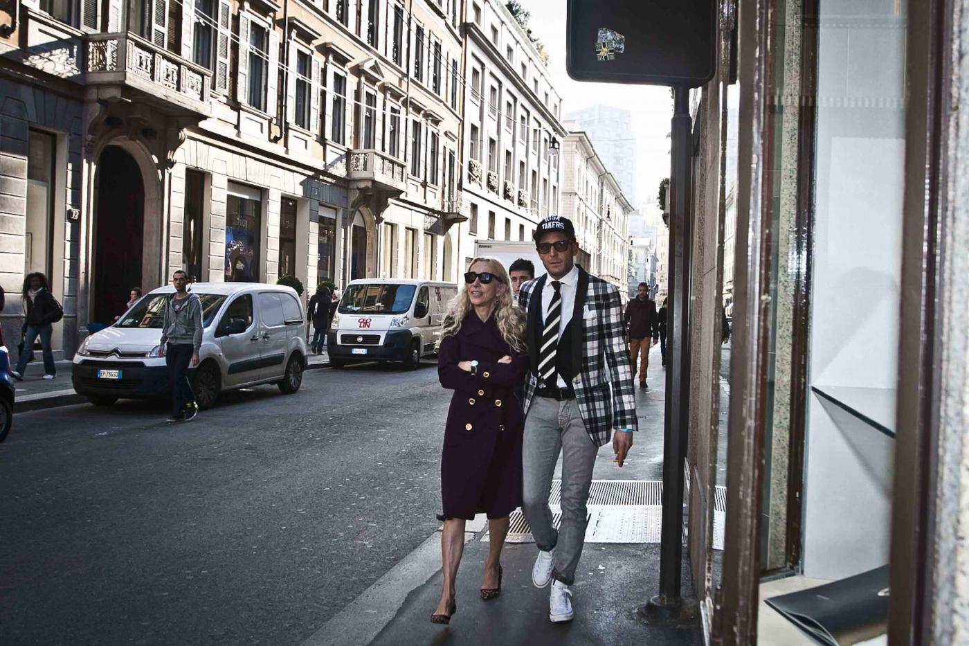 La direttrice di Vogue Italia ha raggiunto lo store di via Montenapoleone e insieme a Lapo ha provato numerosi pezzi della collezione (foto LaPresse)